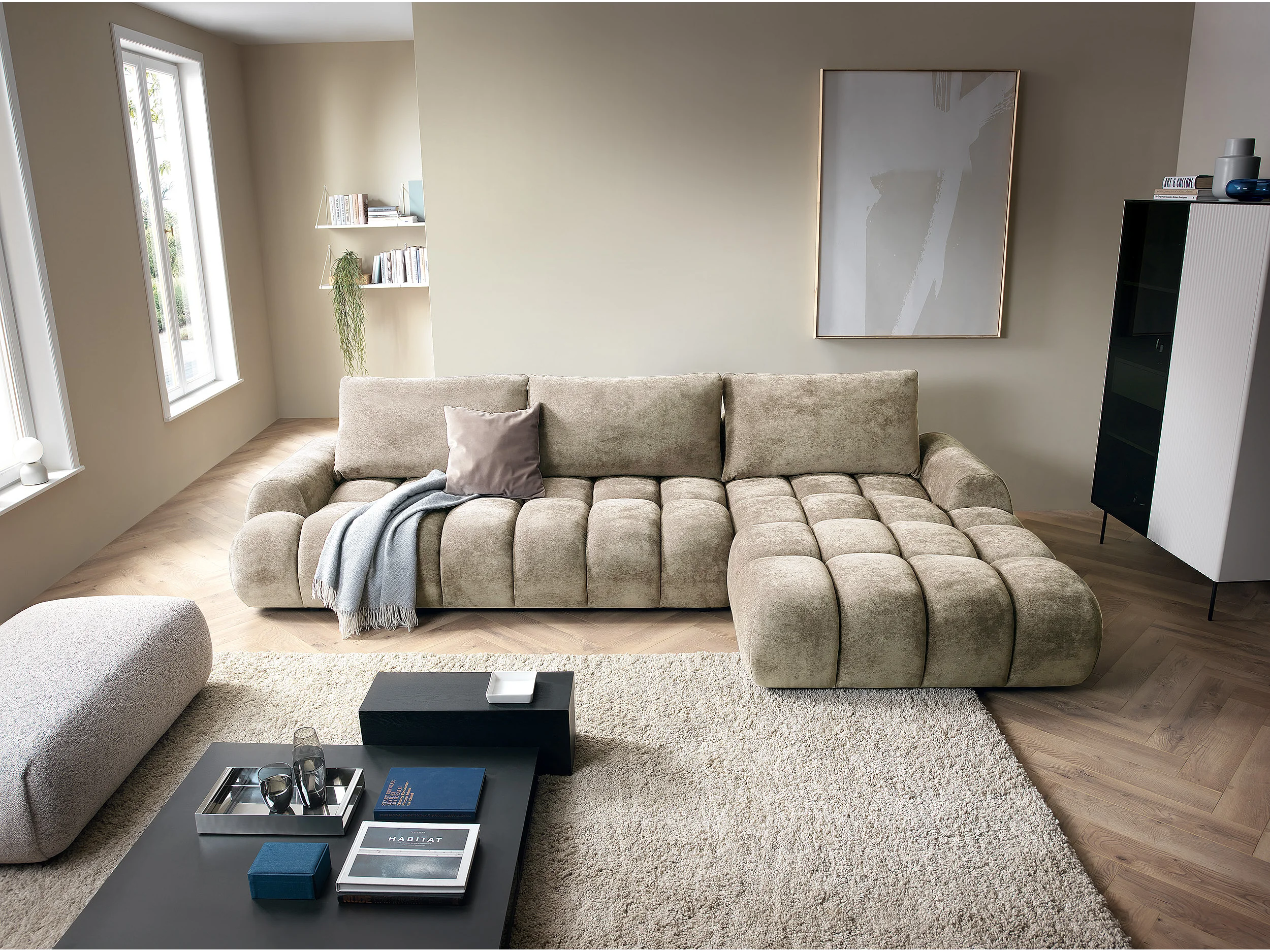 Emporius Valerio Canapé d'angle Convertible - Canapé 340 cm, Droite - Velours Beige (Ditra New 3)