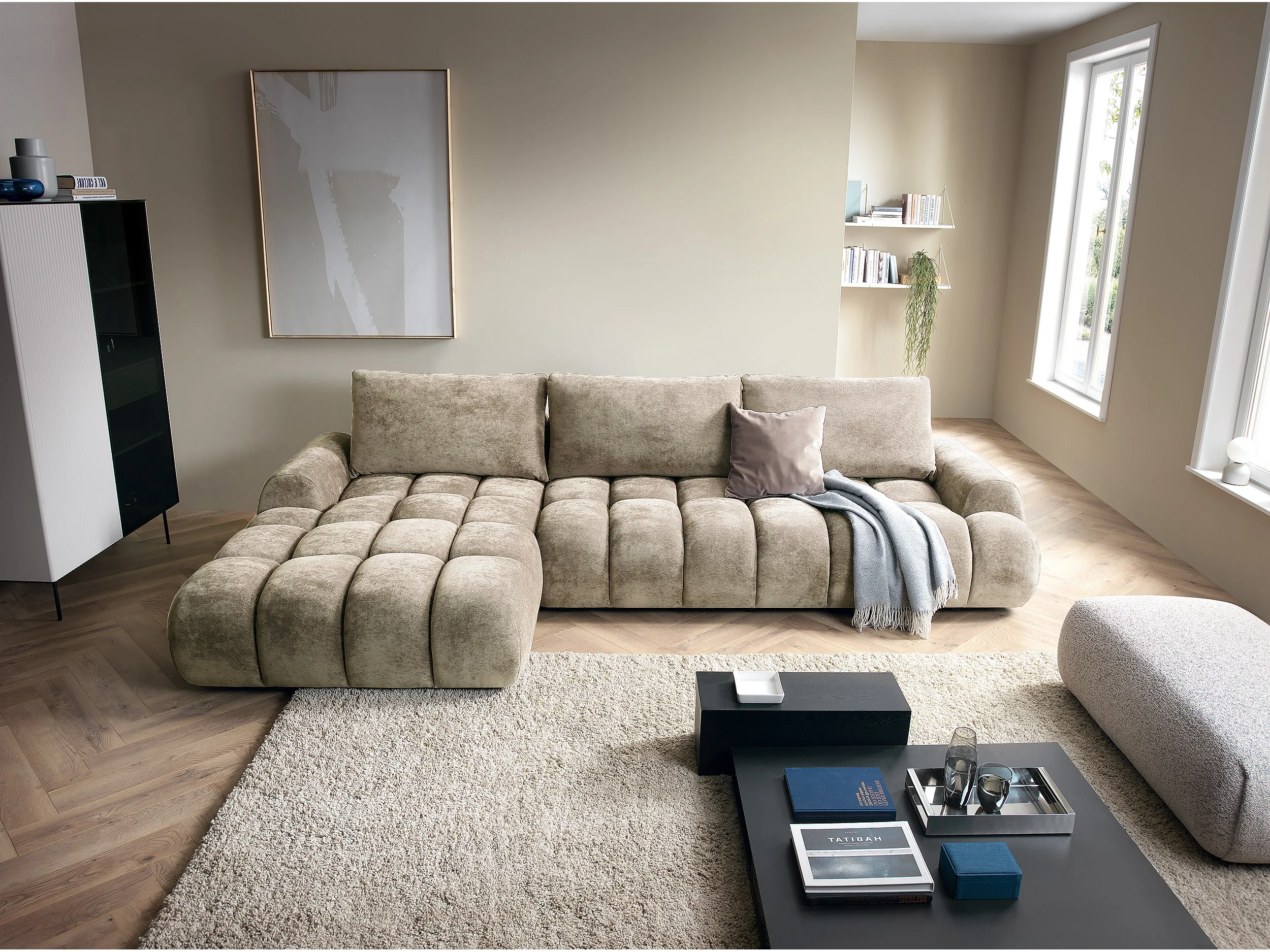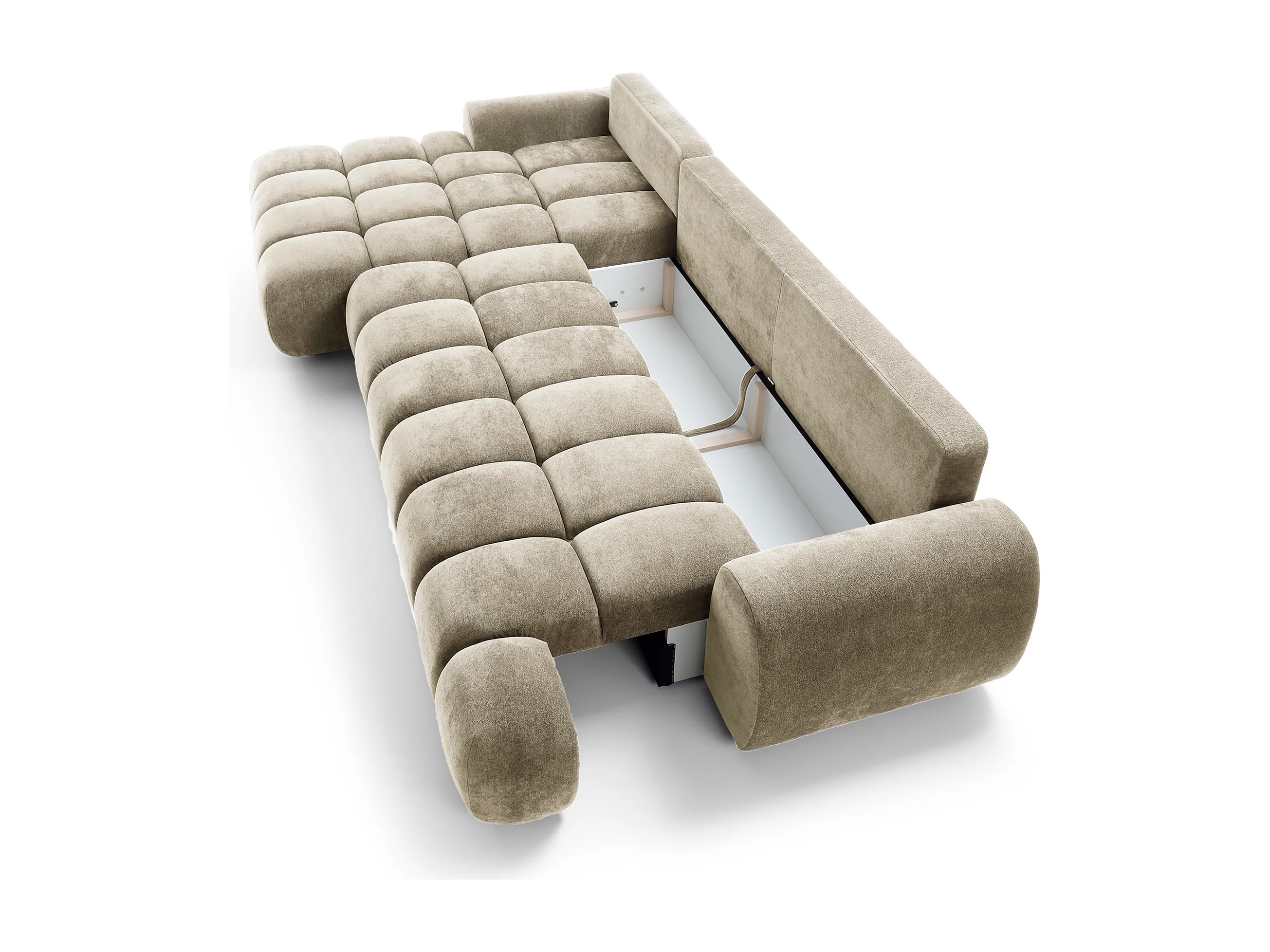 Emporius Valerio Canapé d'angle Convertible - Canapé 340 cm, Gauche - Velours Beige (Ditra New 3)