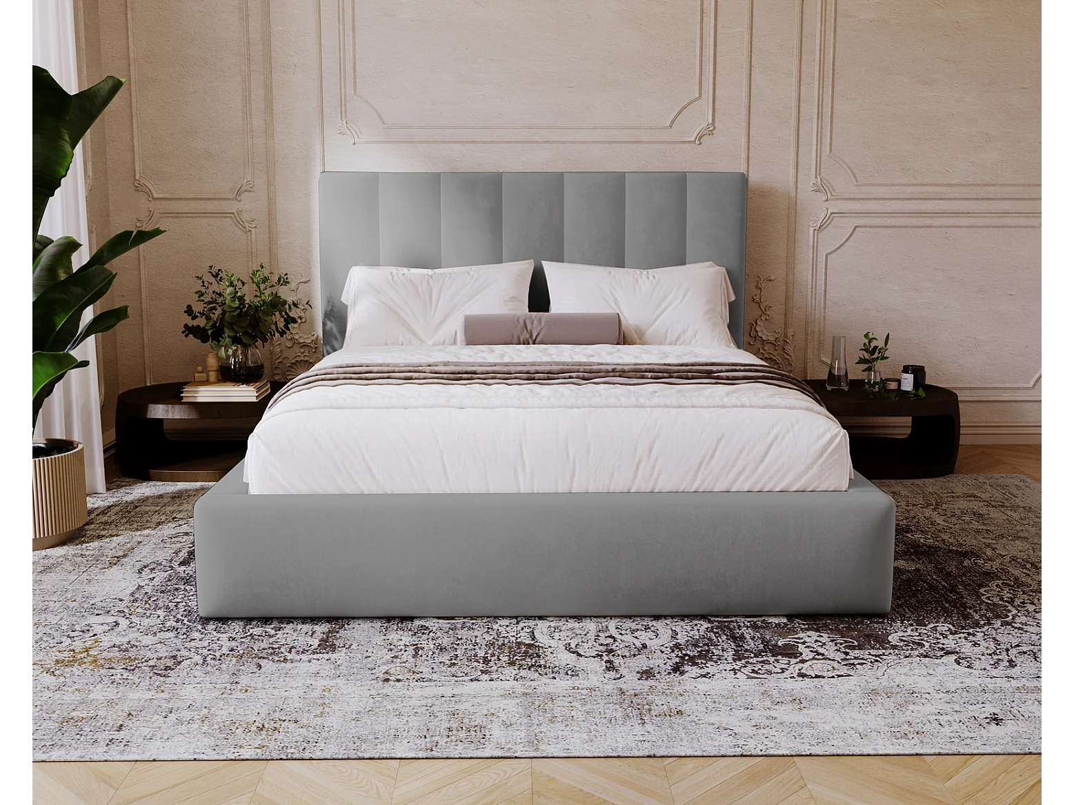 Emporius Velor lit coffre 200x200 avec rangement, lit adulte 200x200, sommier à lattes, velours Gris clair (Magic Velvet 2218)