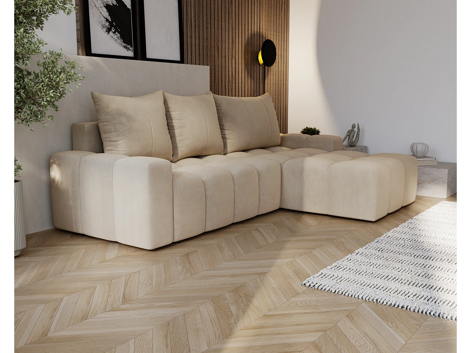 Emporius Wilson Canapé d'angle - Tissu Velours, Canapé 255 cm Convertible, Droite - Beige (Amor Velvet 4304)