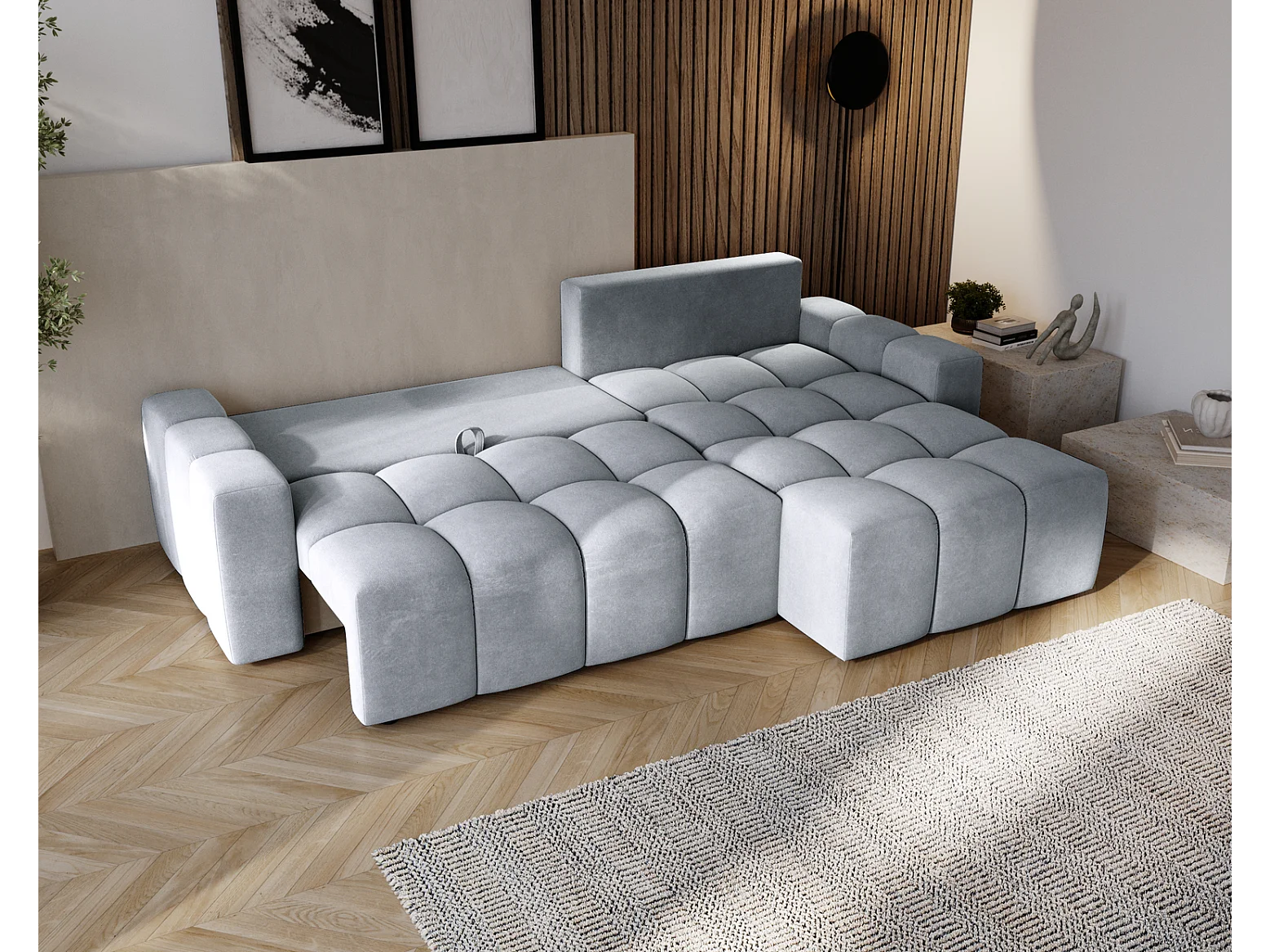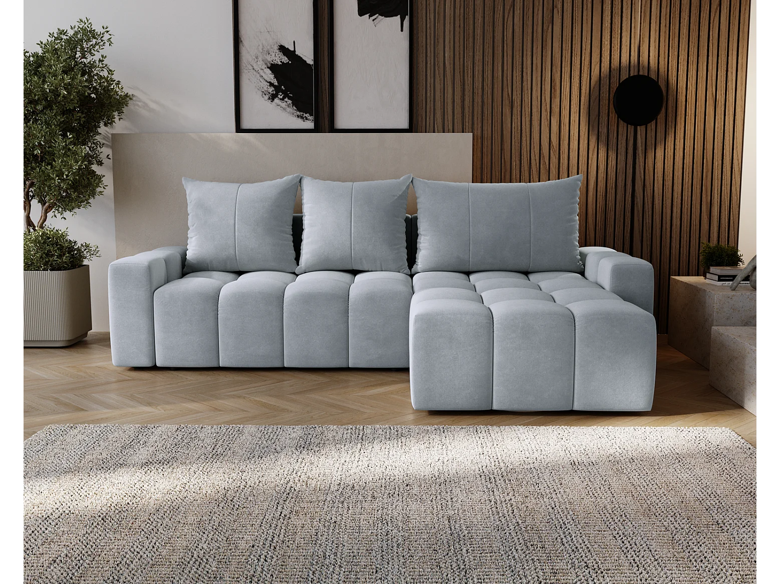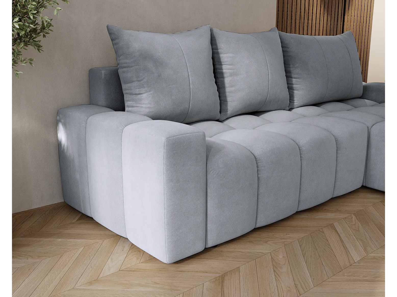 Emporius Wilson Canapé d'angle - Tissu Velours, Canapé 255 cm Convertible, Droite - Gris clair (Amor Velvet 4318)