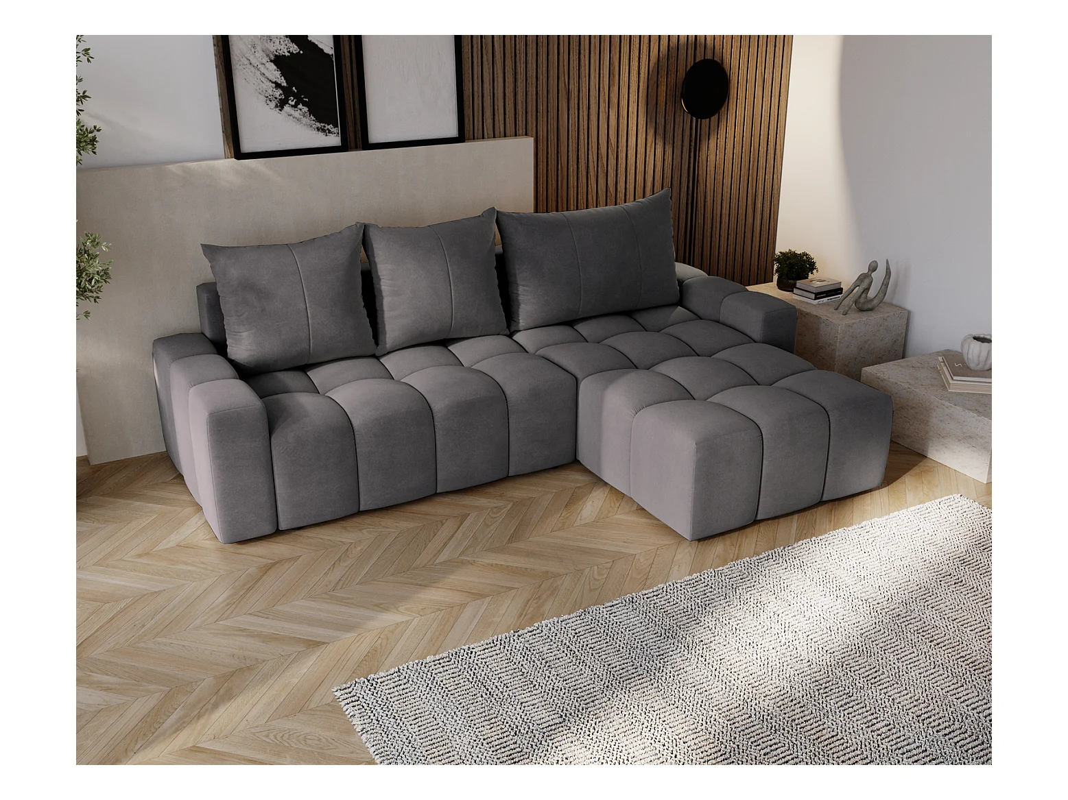 Emporius Wilson Canapé d'angle - Tissu Velours, Canapé 255 cm Convertible, Droite - Gris foncé (Amor Velvet 4321)