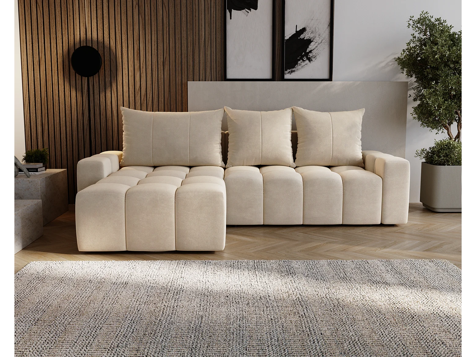 Emporius Wilson Canapé d'angle - Tissu Velours, Canapé 255 cm Convertible, Gauche - Beige (Amor Velvet 4304)