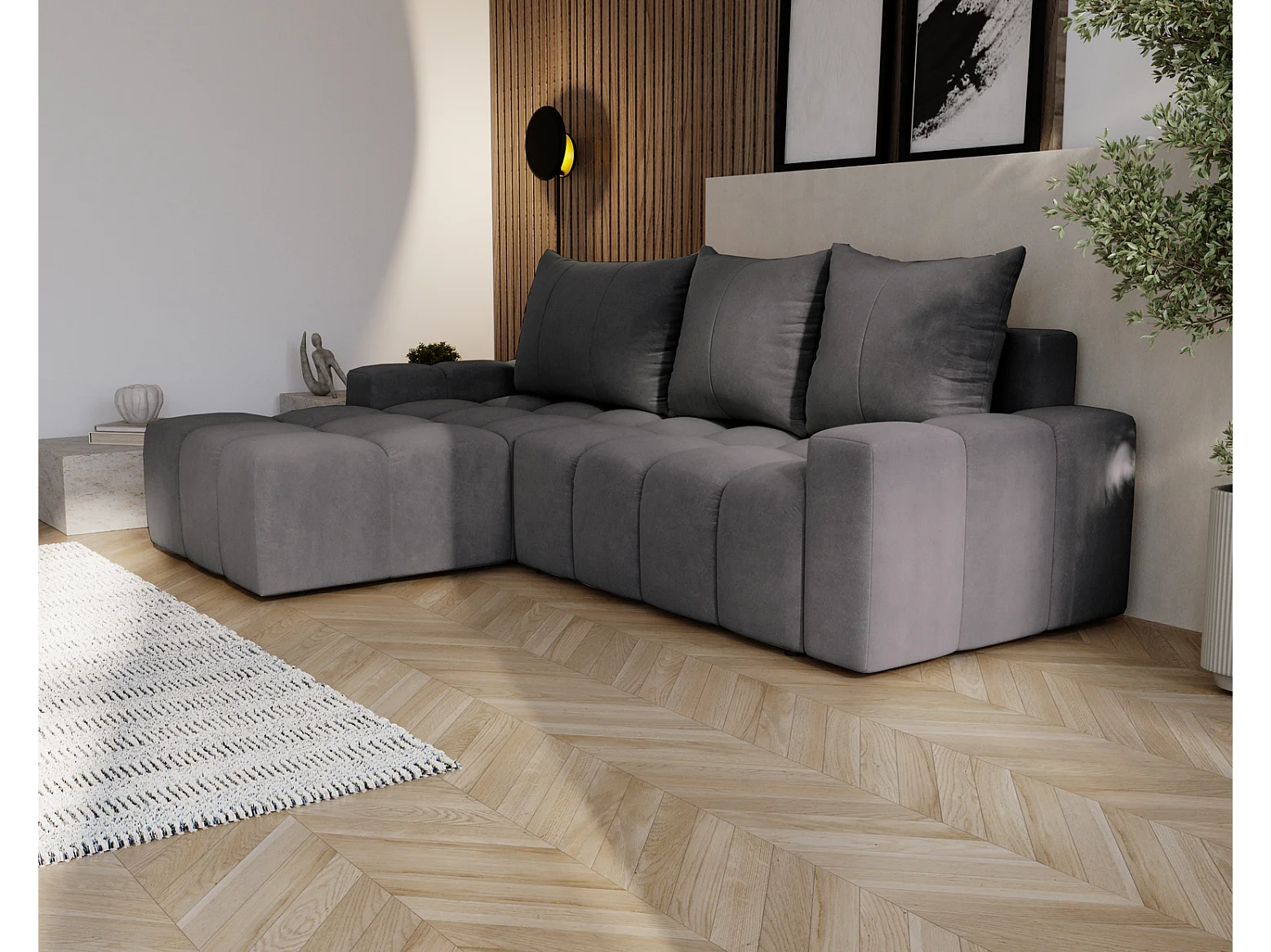 Emporius Wilson Canapé d'angle - Tissu Velours, Canapé 255 cm Convertible, Gauche - Gris foncé (Amor Velvet 4321)