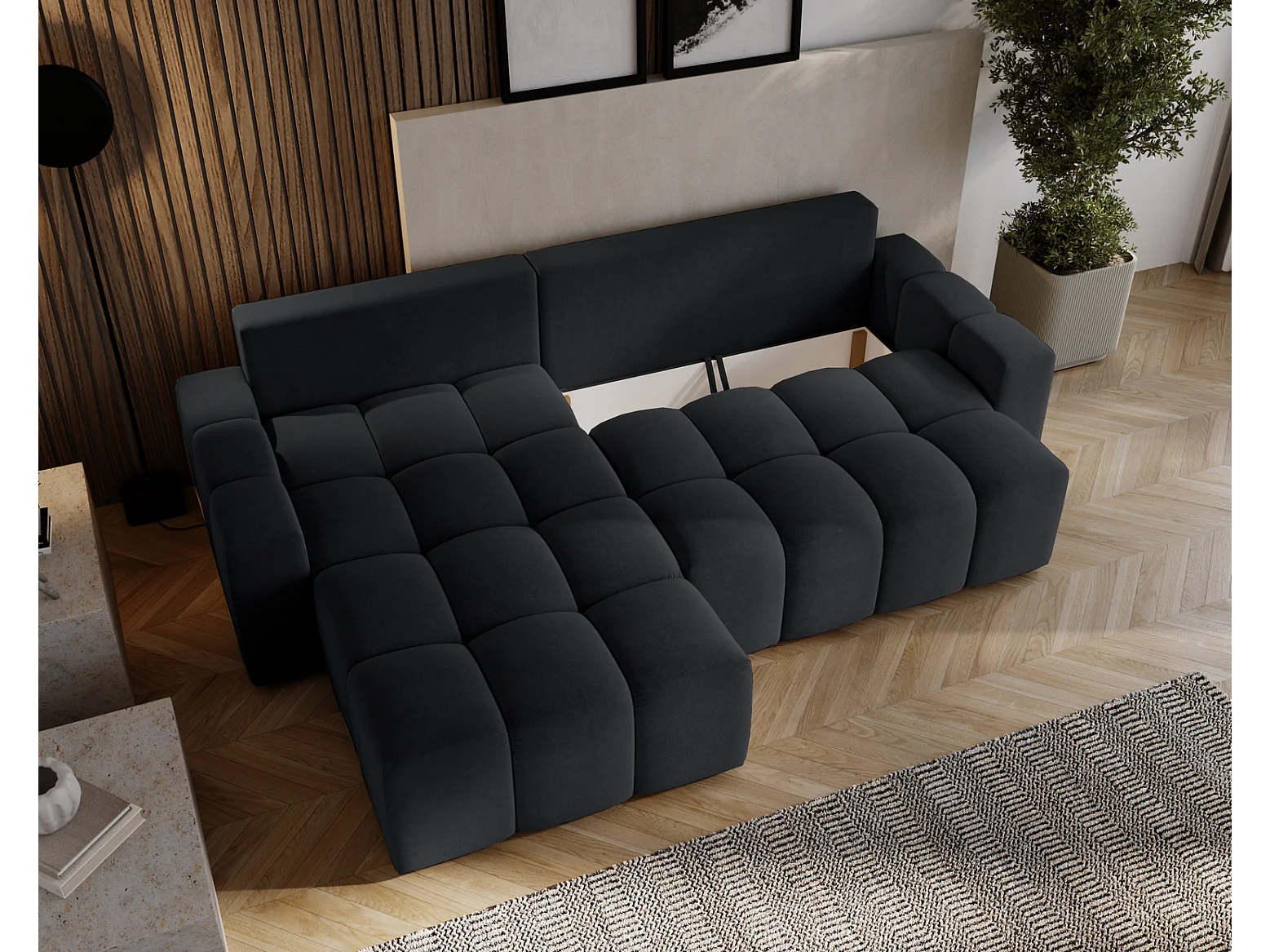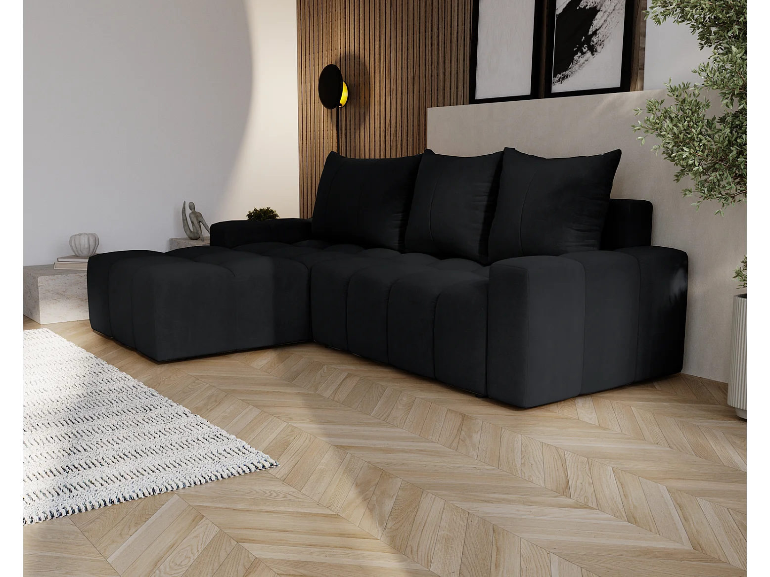 Emporius Wilson Canapé d'angle - Tissu Velours, Canapé 255 cm Convertible, Gauche - Noir (Amor Velvet 4322)