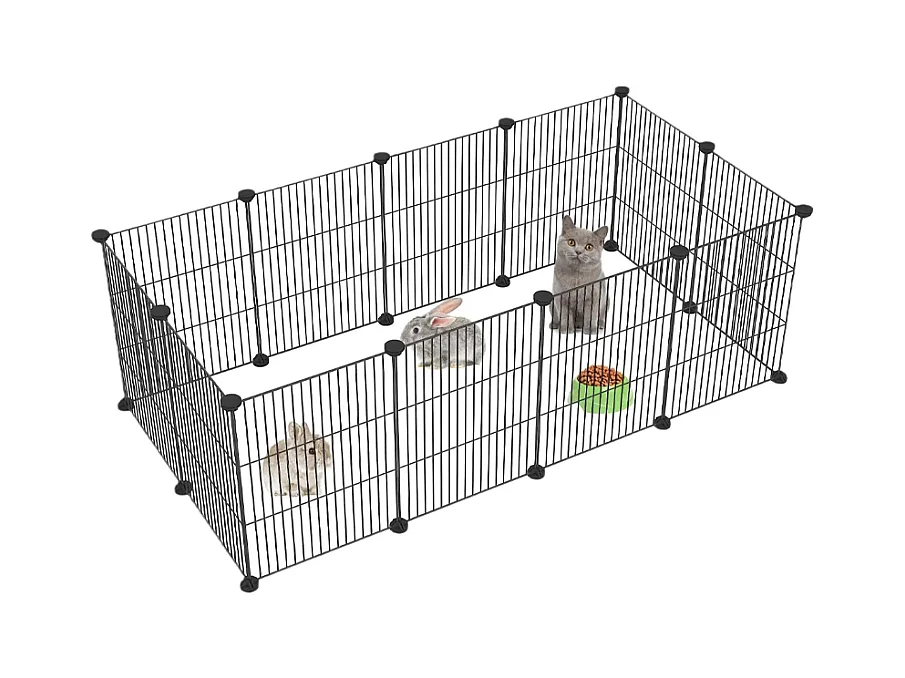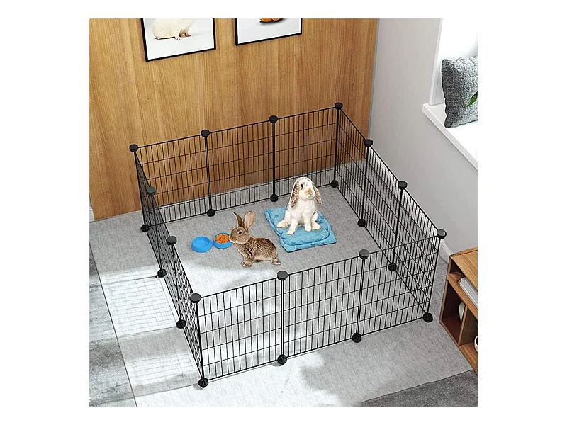 Enclos en métal noir pour chien chat chiot lapin 108 cm