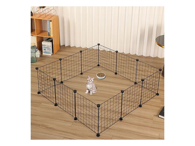 Enclos en métal noir pour chien chat chiot lapin 108 cm