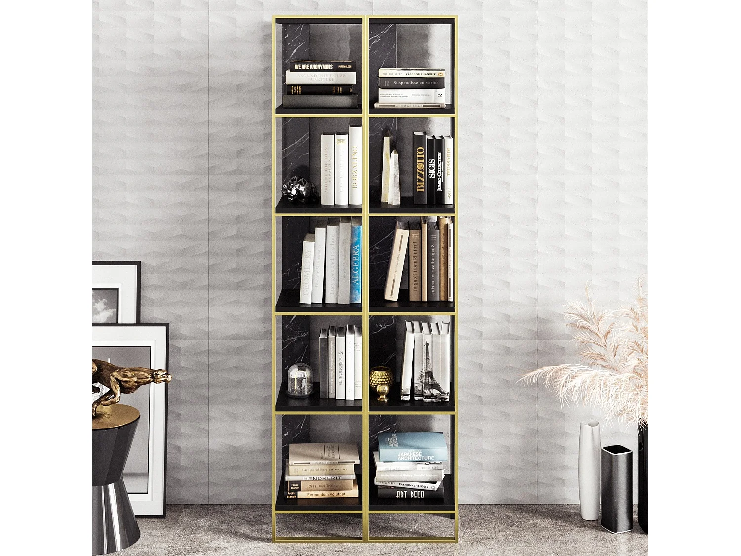 Ensembe de 2 bibliothèques Luxoria H178,5cm Bois Noir effet marbre et Métal Or