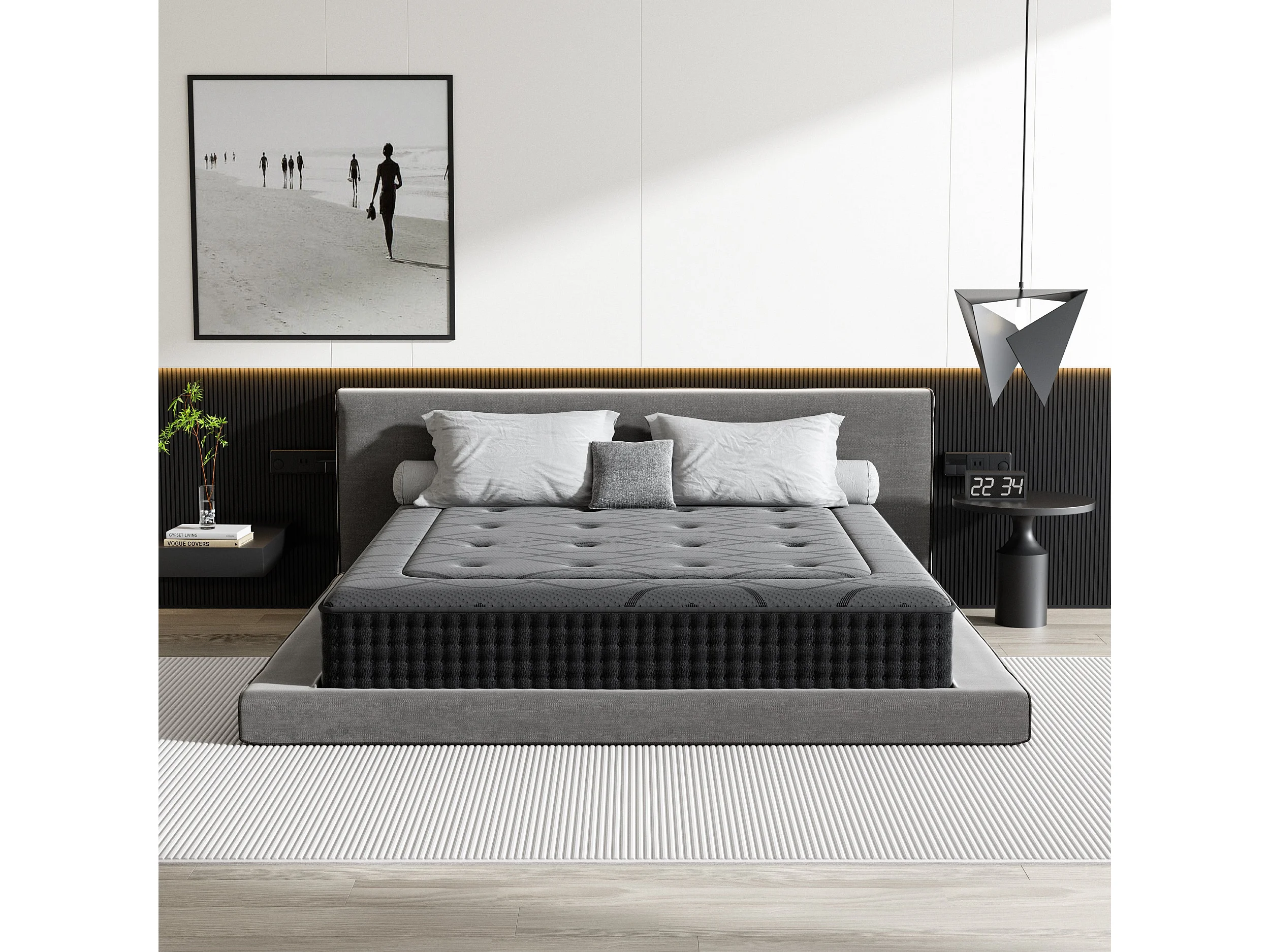 Ensemble cadre de lit métallique LED 160 x 200 cm + matelas à ressorts 30 cm