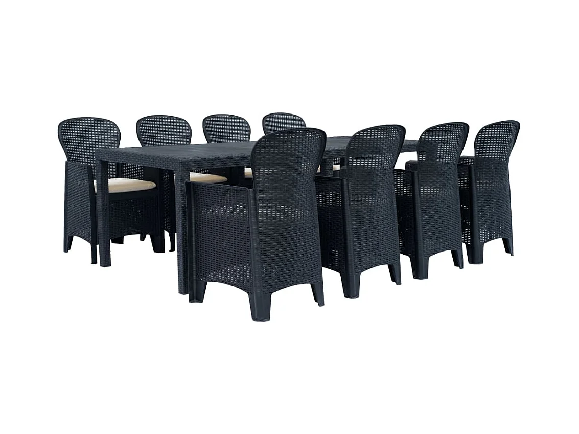 Ensemble à dîner 9 pcs Plastique Anthracite Aspect de rotin BE43105