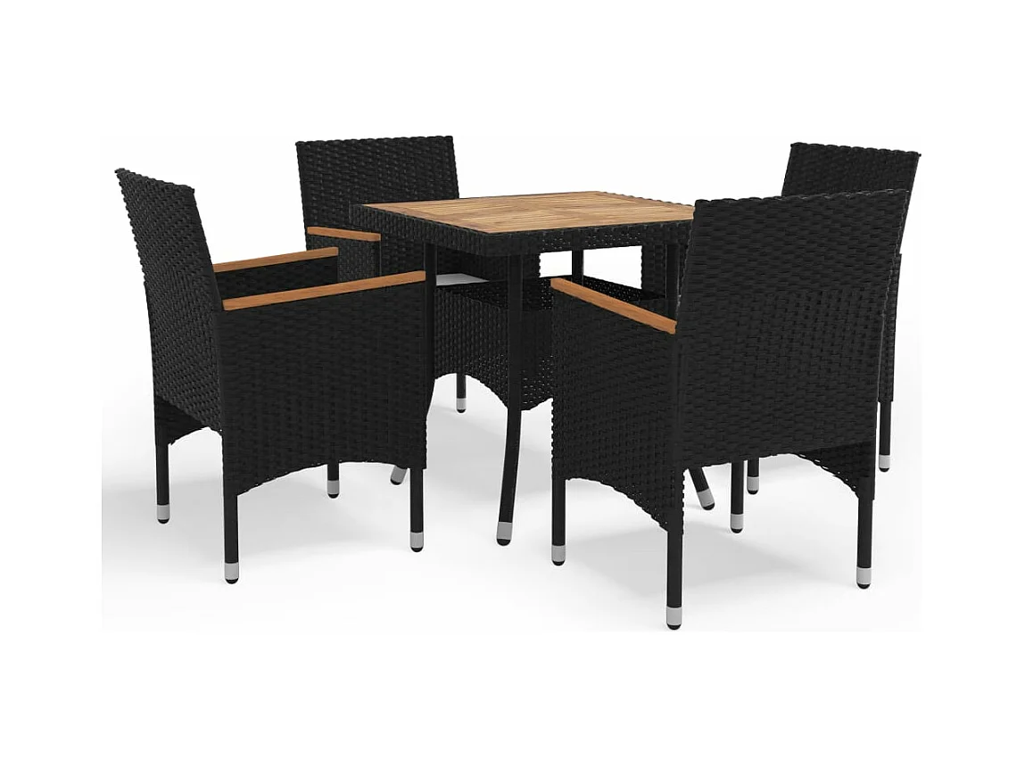 Ensemble à dîner de jardin 5 pcs Noir Résine tressée et acacia BE85514