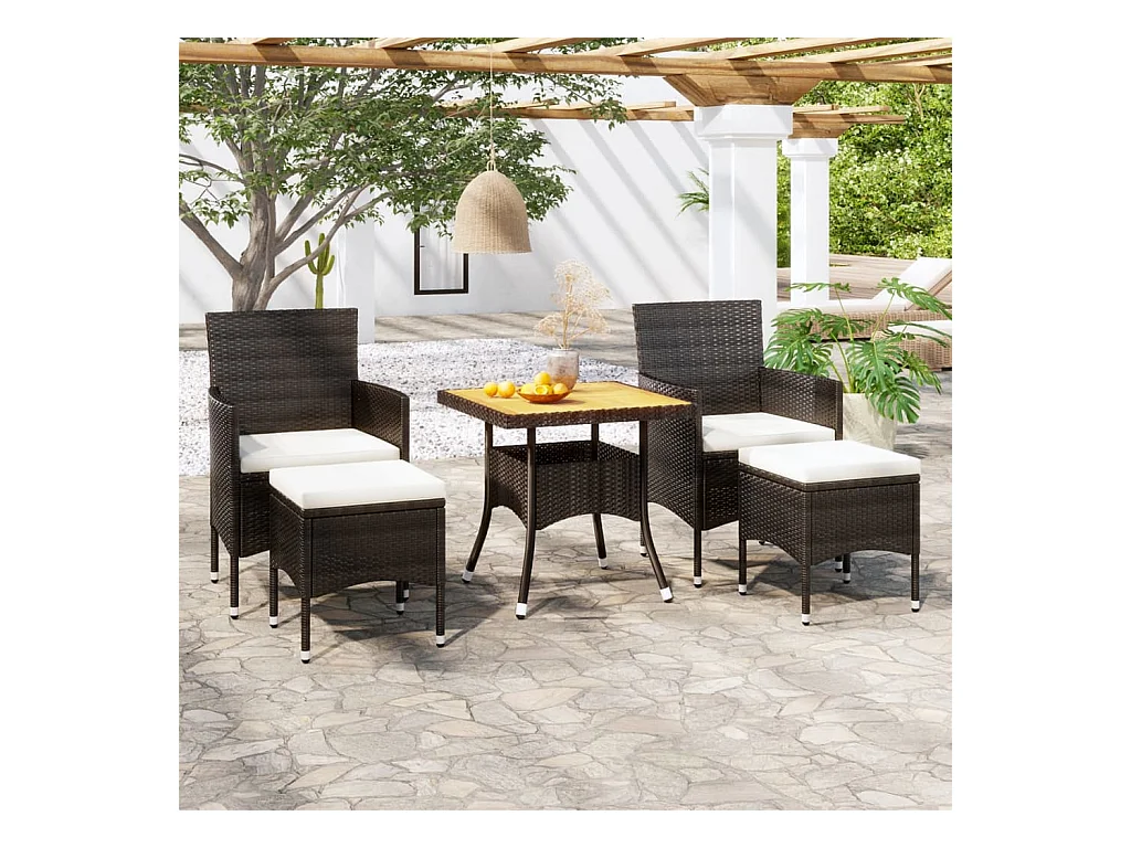 Ensemble à dîner de jardin 5 pcs Résine tressée et acacia Noir BE20771