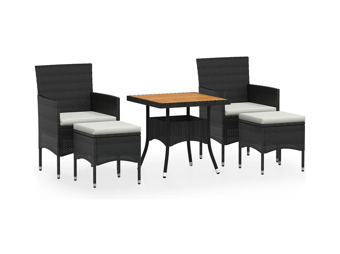 Ensemble à dîner de jardin 5 pcs Noir Résine tressée et acacia BE85514