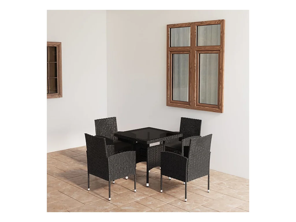 Ensemble à manger de jardin coussins 5pcs Noir Résine tressée BE84226