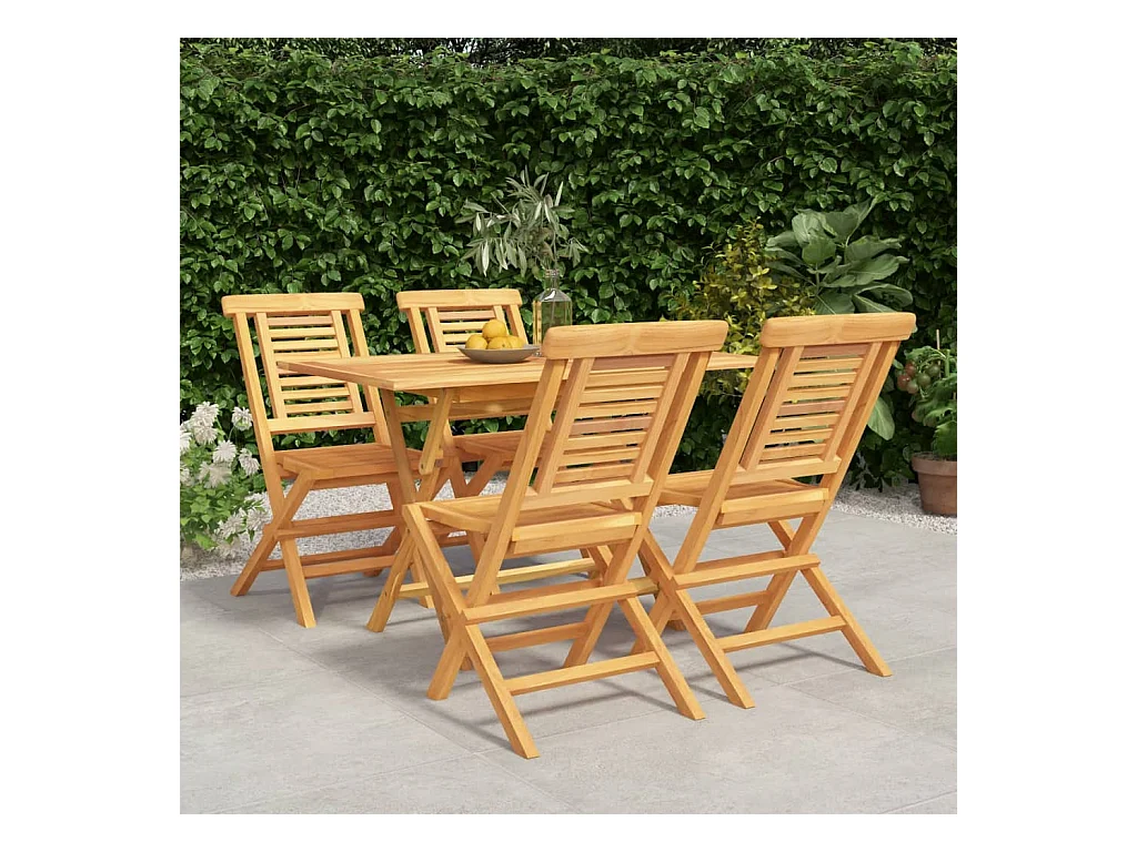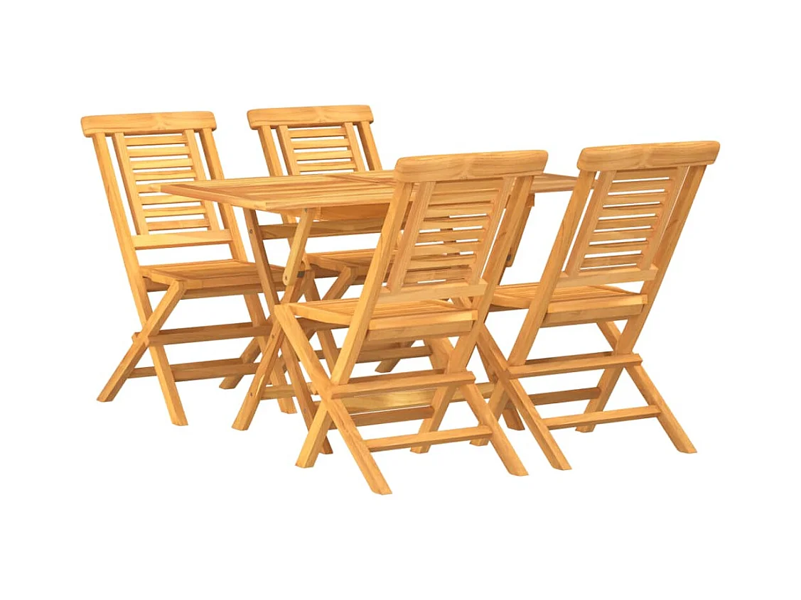 Mobilier à dîner d'extérieur pliable 5 pièces Bois solide de teck