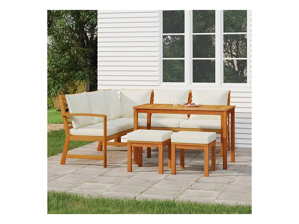 Ensemble à dîner de jardin 6 pièces avec coussins Bois d'acacia