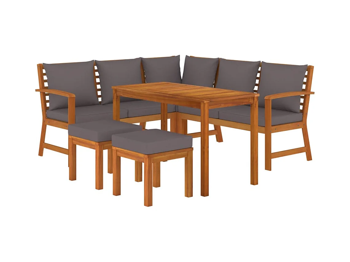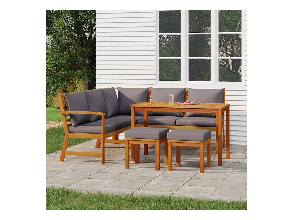 Ensemble à dîner de jardin 6 pièces avec coussins Bois d'acacia