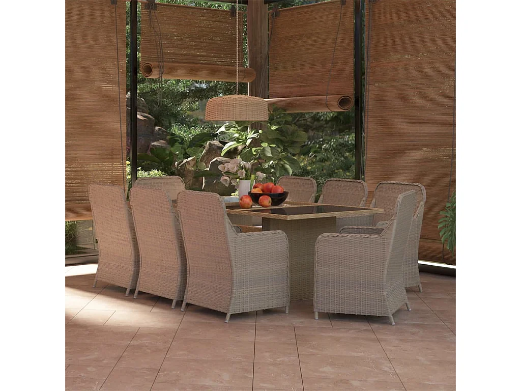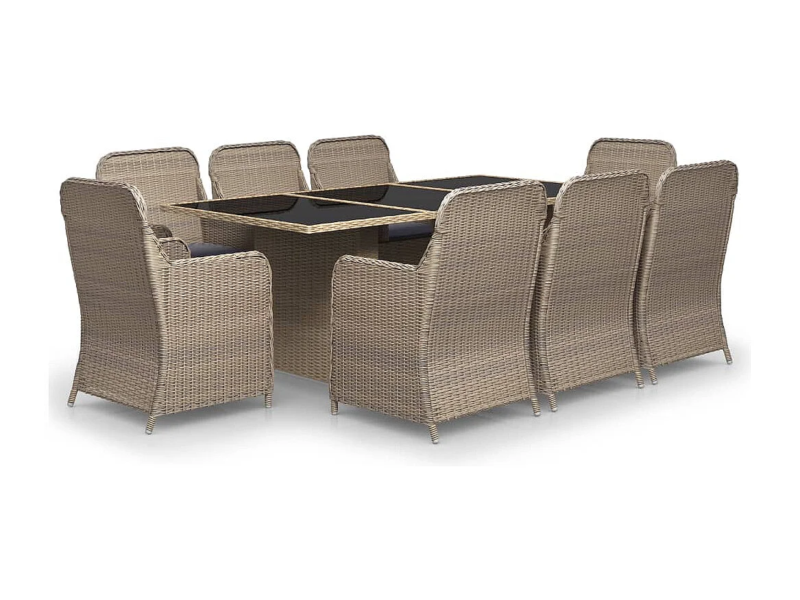 Ensemble à manger de jardin 9 pcs Résine tressée Marron