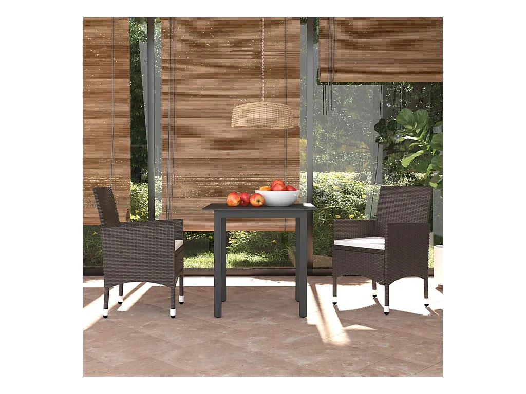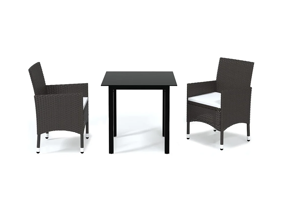 Ensemble à dîner de jardin avec coussins 3 pcs poly rotin brun