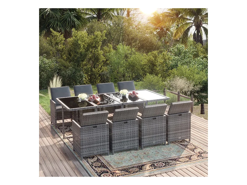 Ensemble à manger de jardin 9 pièces coussins gris résine tressée