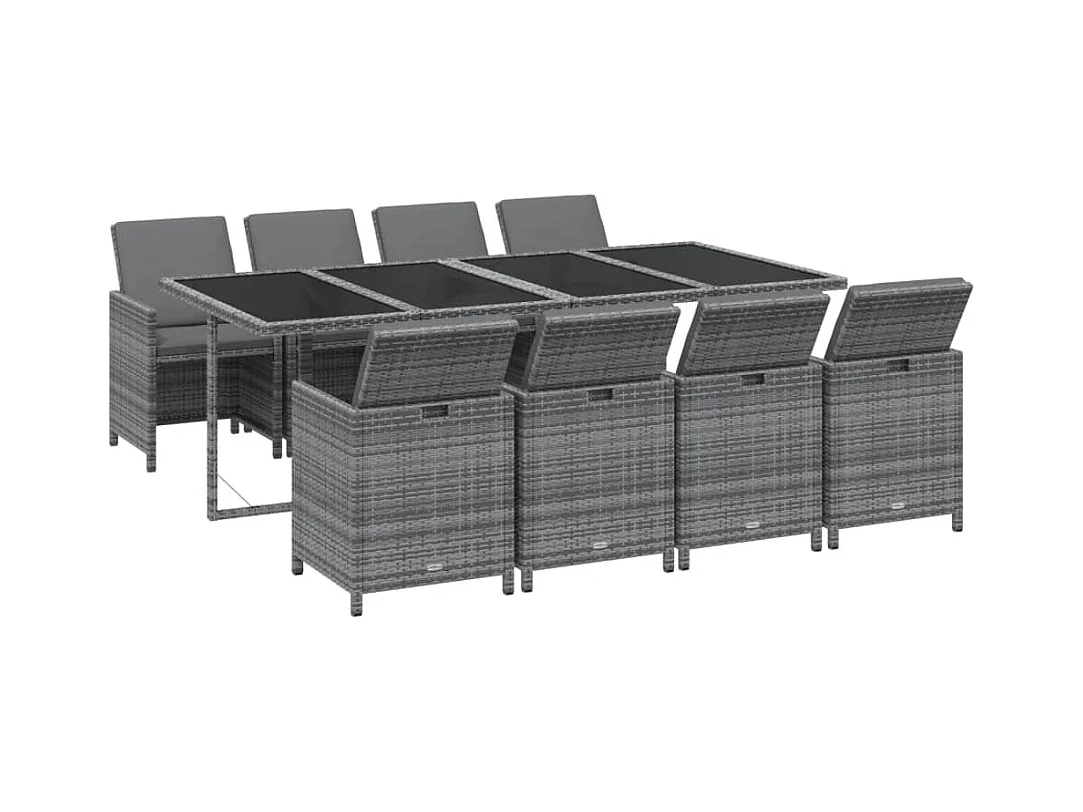 Ensemble à dîner de jardin coussins 9 pièces Résine tressée Gris