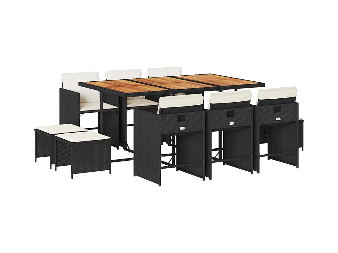 Ensemble à manger de jardin 11 pcs coussins noir résine tressée