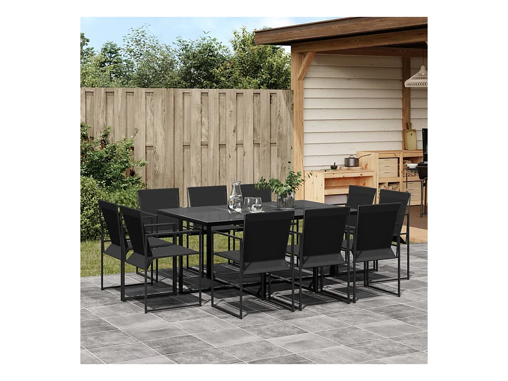 Ensemble à manger de jardin 11 pcs noir textilène