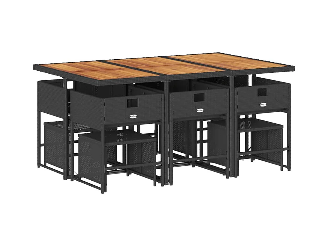 Ensemble à manger de jardin 11 pièces coussins noir résine tressée