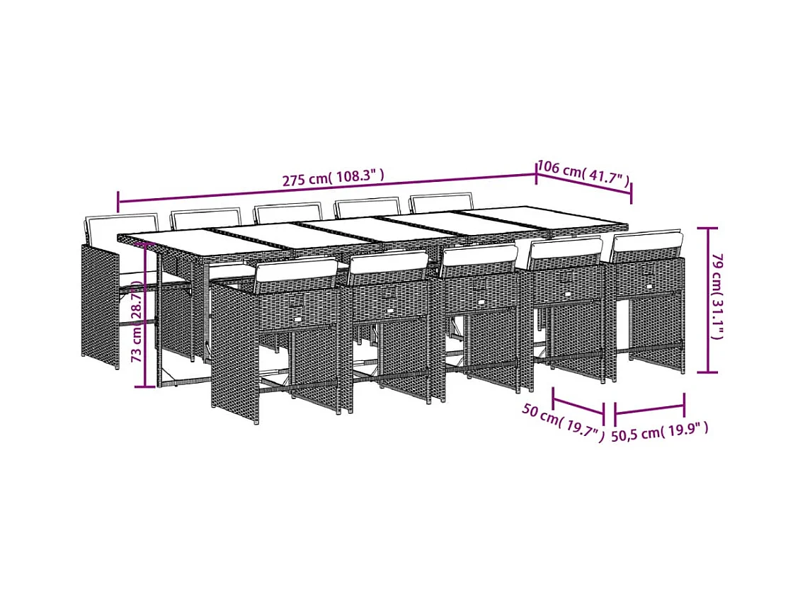 Ensemble à manger de jardin 11 pièces coussins noir résine tressée