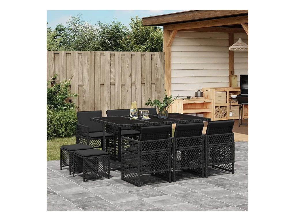 Ensemble à manger de jardin 11 pièces coussins noir résine tressée