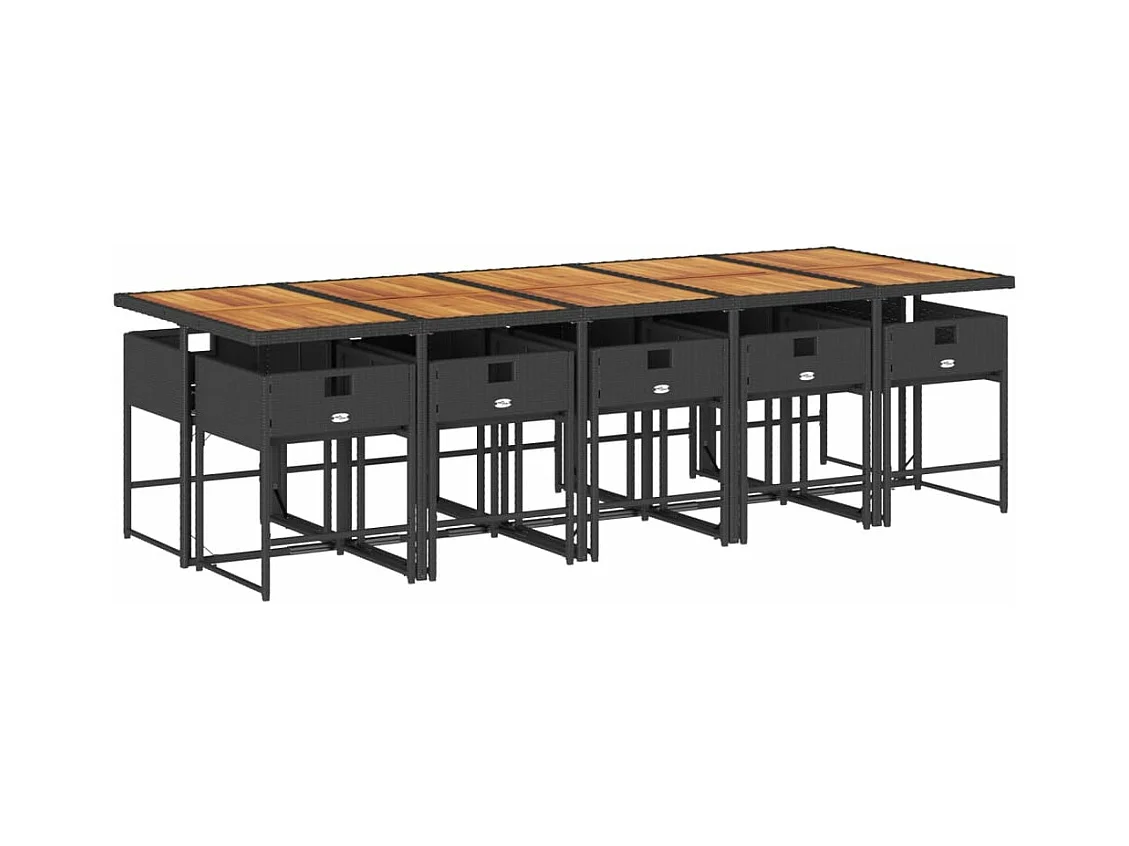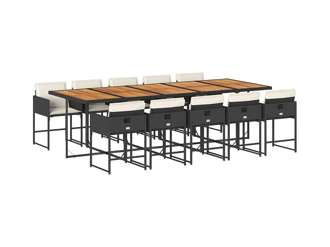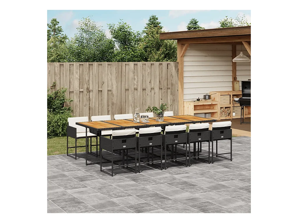 Ensemble à manger de jardin 11 pièces coussins noir résine tressée