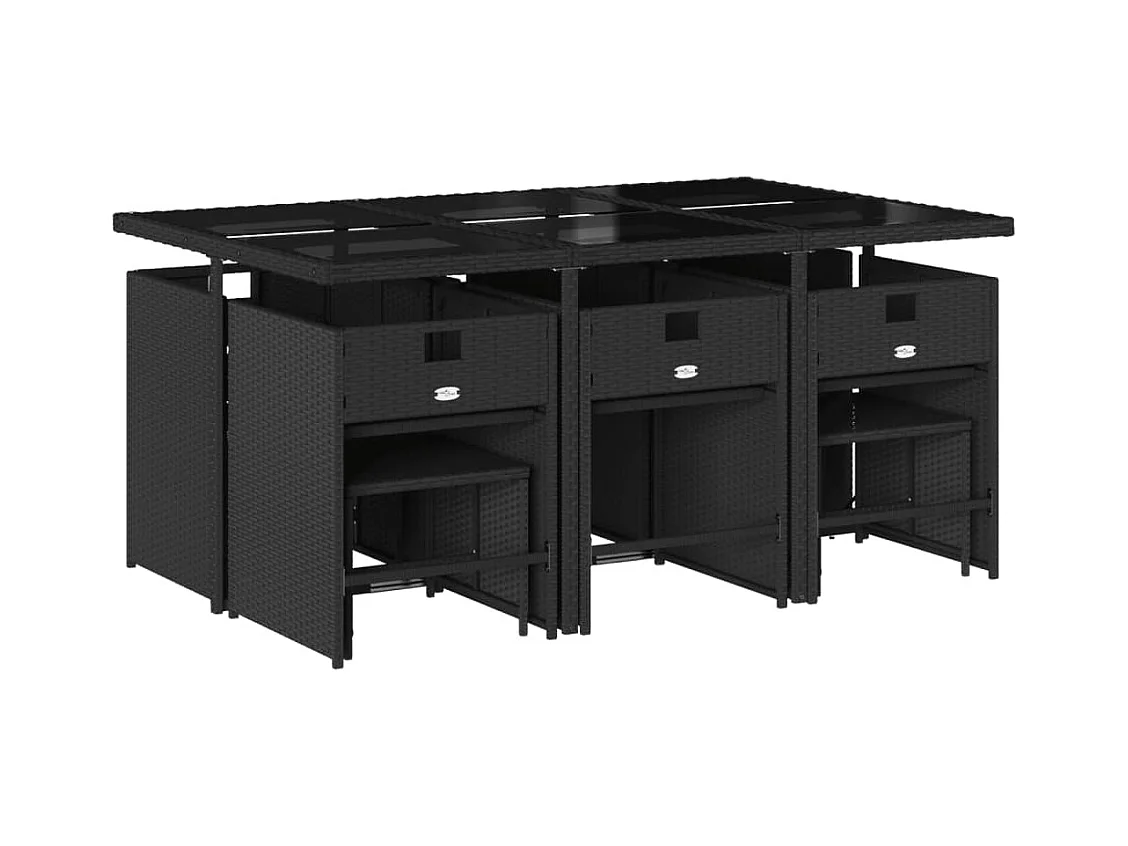 Ensemble à manger de jardin 11 pièces coussins noir résine tressée