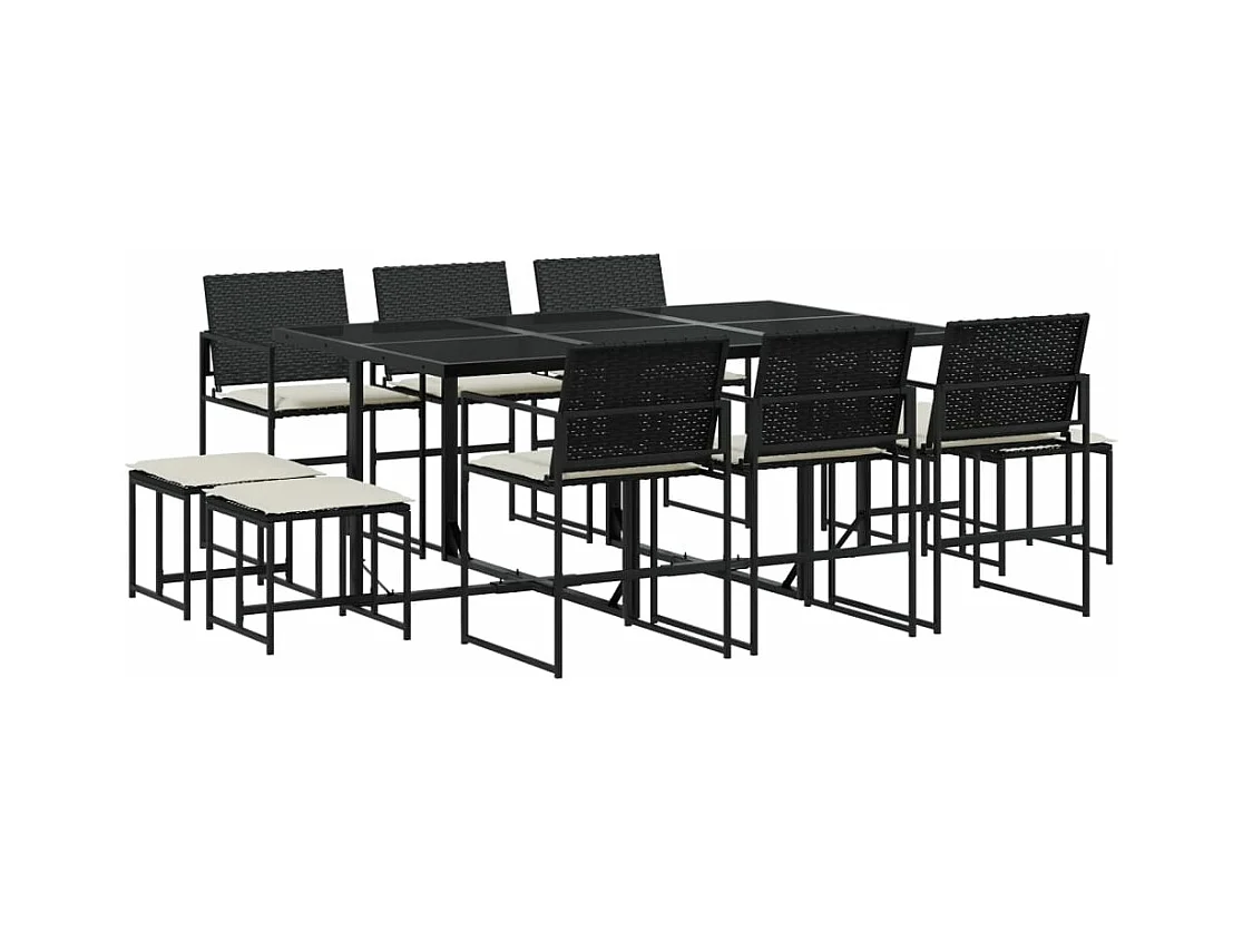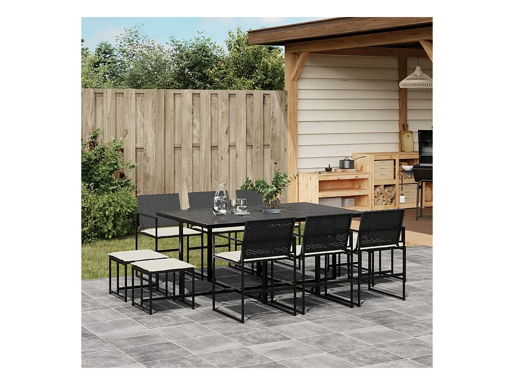 Ensemble à manger de jardin 11 pièces coussins noir résine tressée