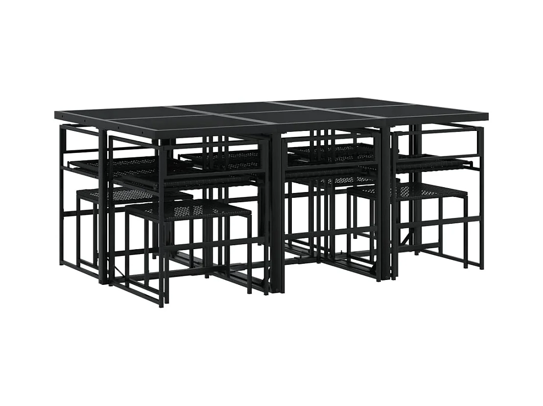 Ensemble à manger de jardin 11 pièces noir résine tressée