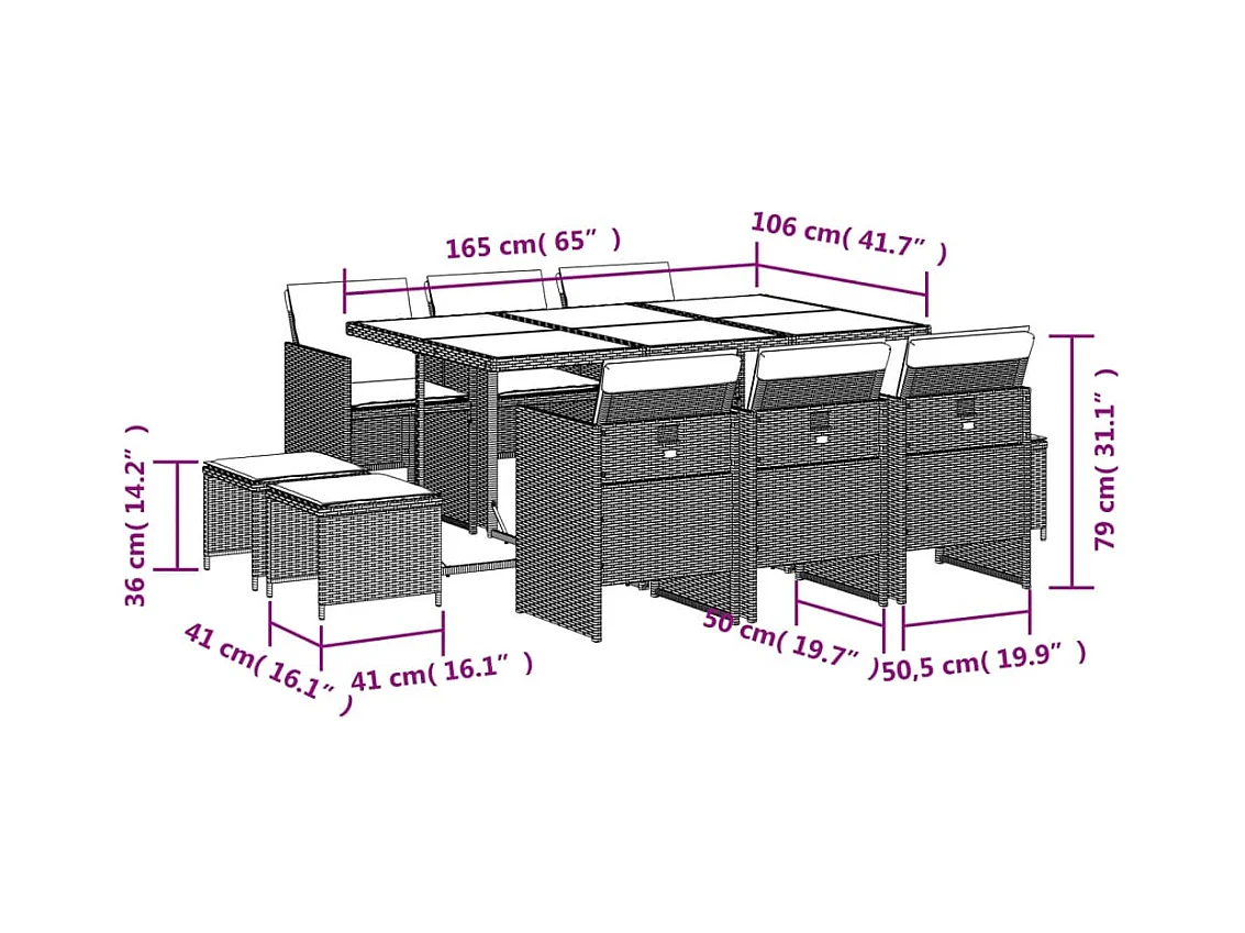 Ensemble à manger de jardin 11 pièces coussins noir résine tressée