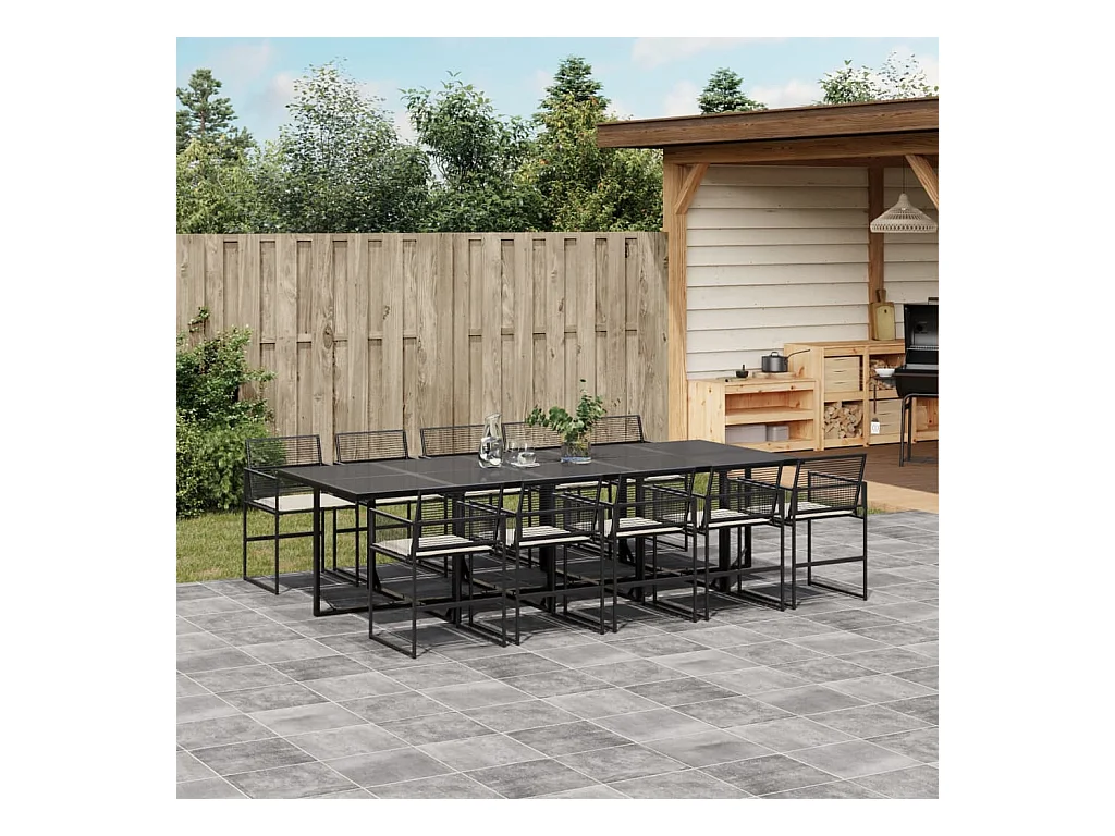 Ensemble à manger de jardin 11 pièces coussins noir résine tressée