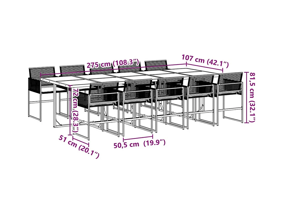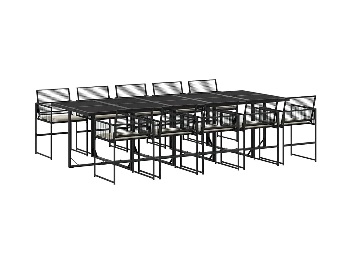 Ensemble à manger de jardin 11 pièces noir résine tressée