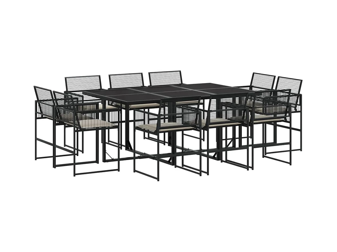 Ensemble à manger de jardin 11 pièces coussins noir résine tressée