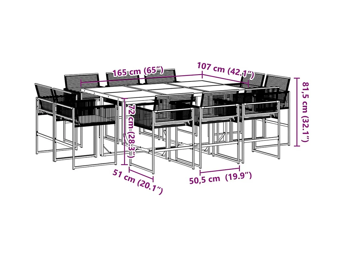 Ensemble à manger de jardin 11 pièces noir résine tressée