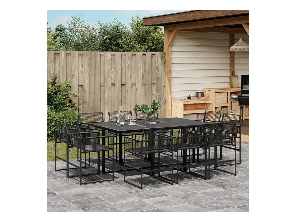 Ensemble à manger de jardin 11 pièces noir résine tressée