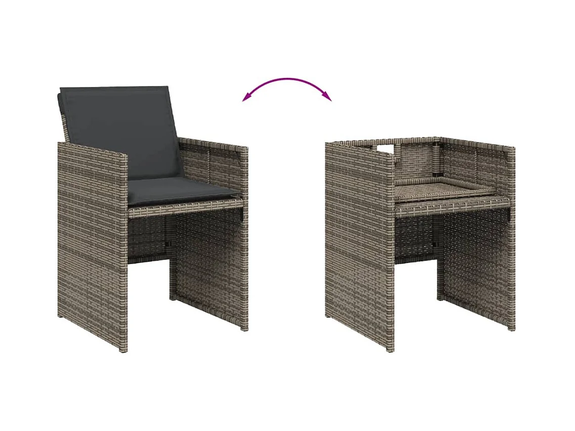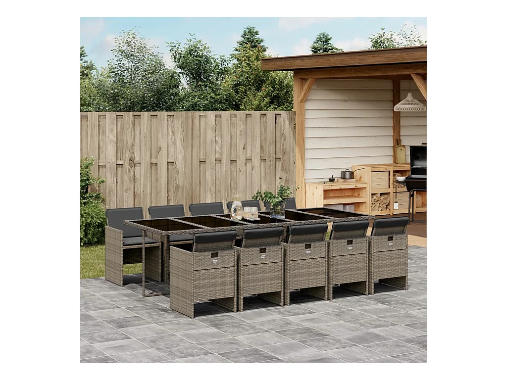 Ensemble à manger de jardin 11pcs avec coussins gris poly rotin