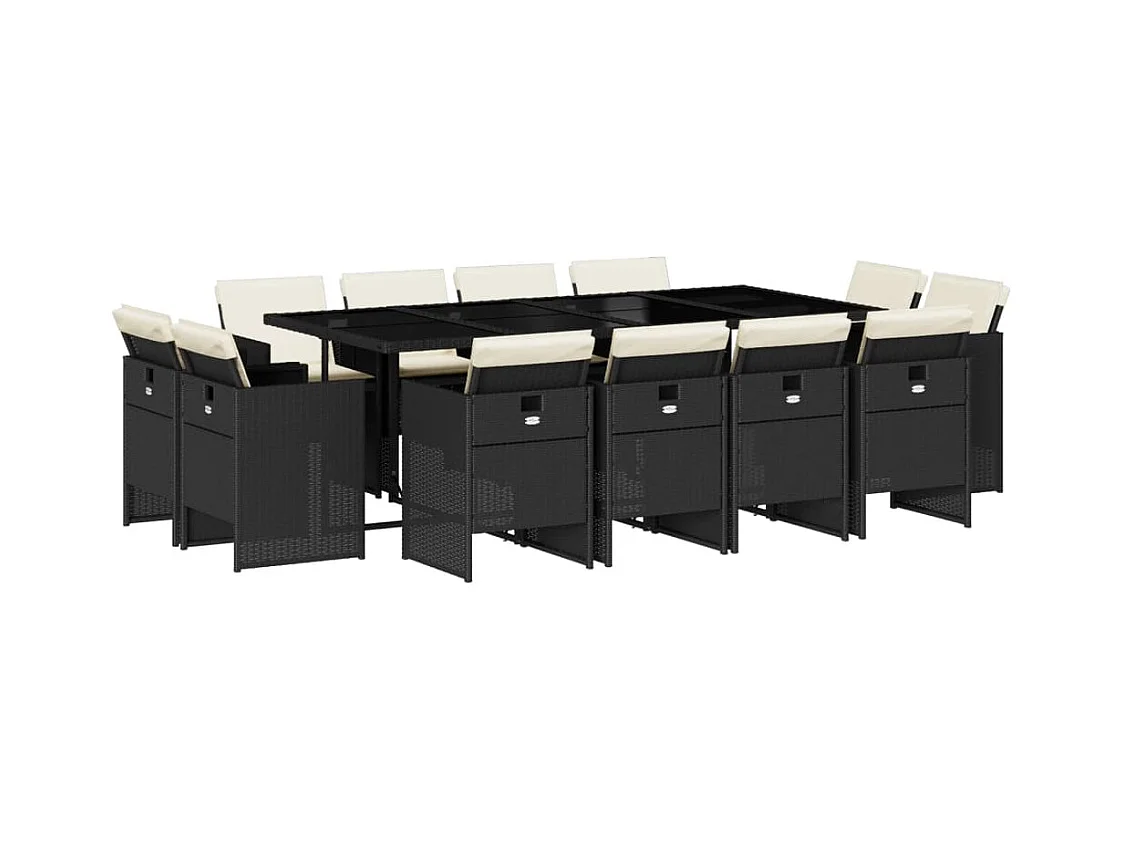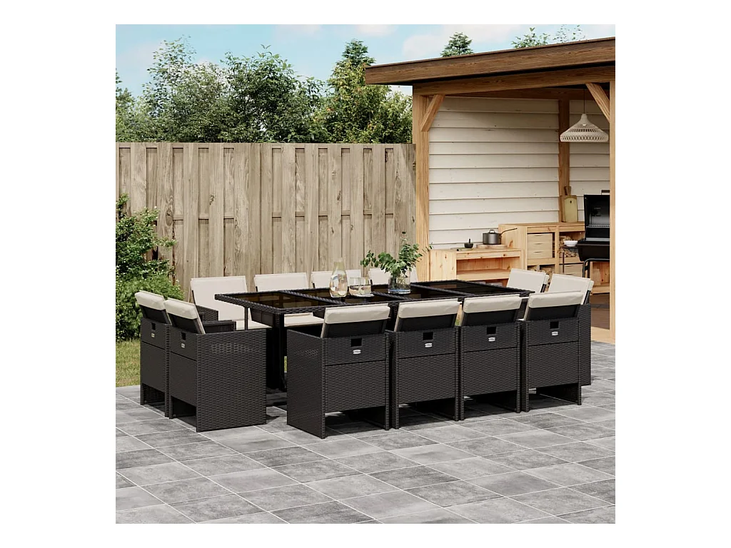 Ensemble à manger de jardin 13 pcs coussins noir résine tressée