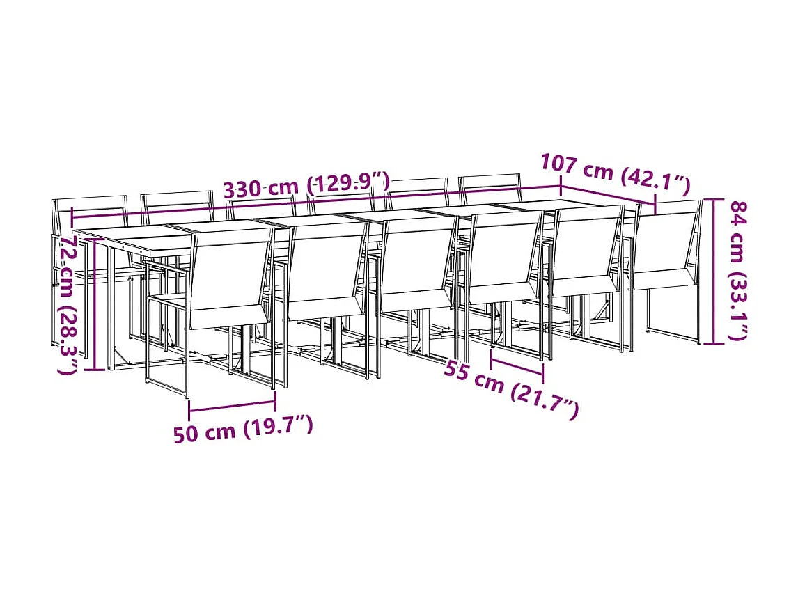 Ensemble Table et chaise de jardin rectangle métal