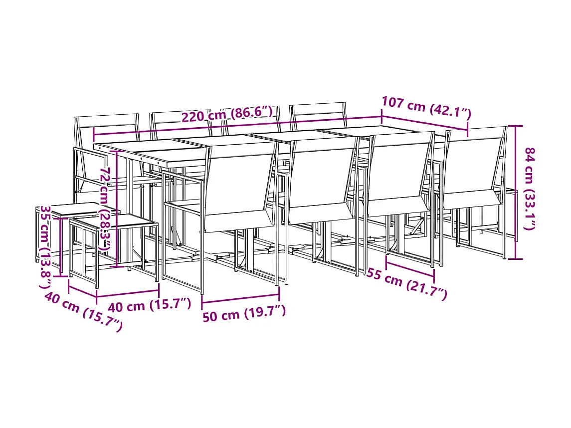 Ensemble à manger de jardin avec coussins 9 pcs noir textilène