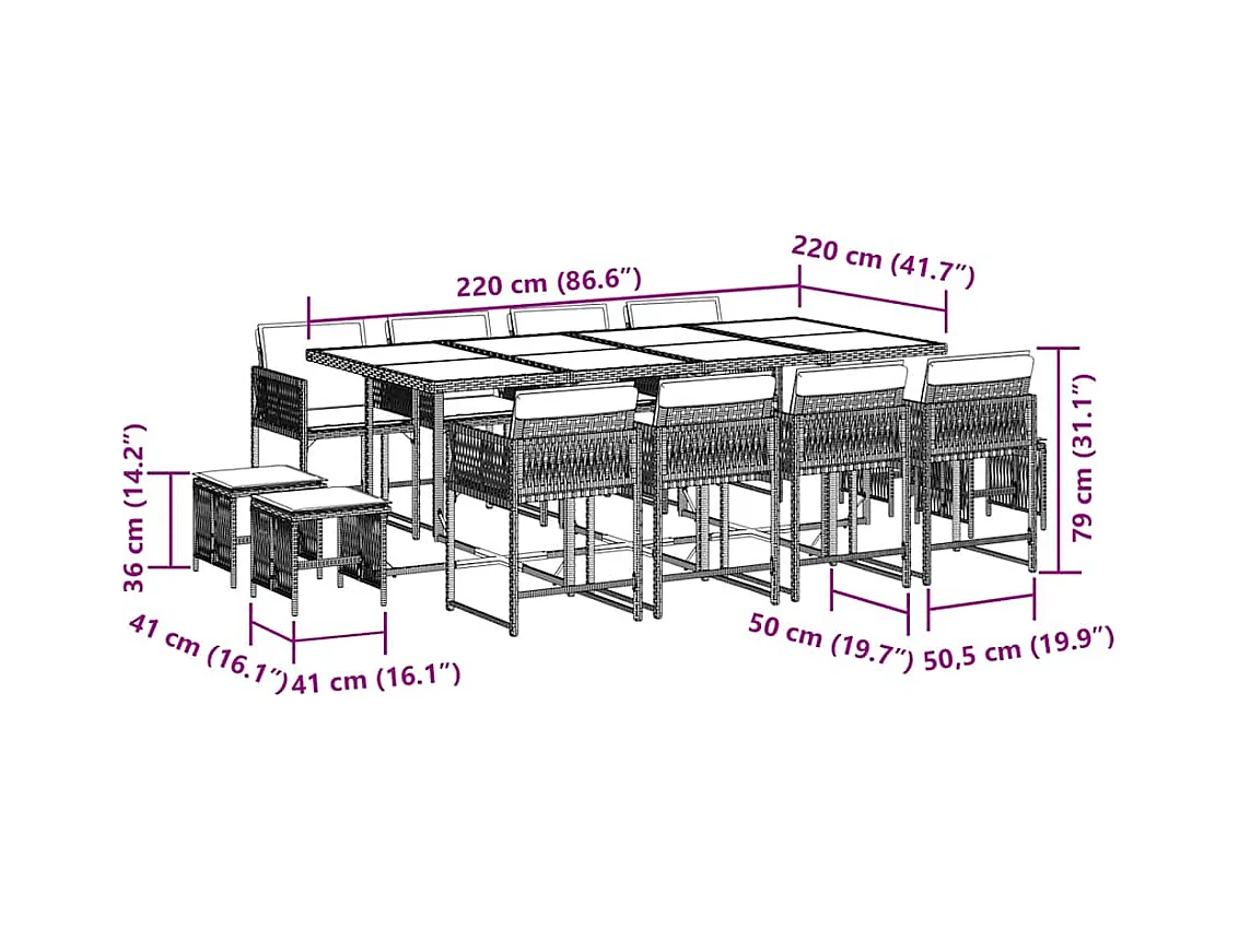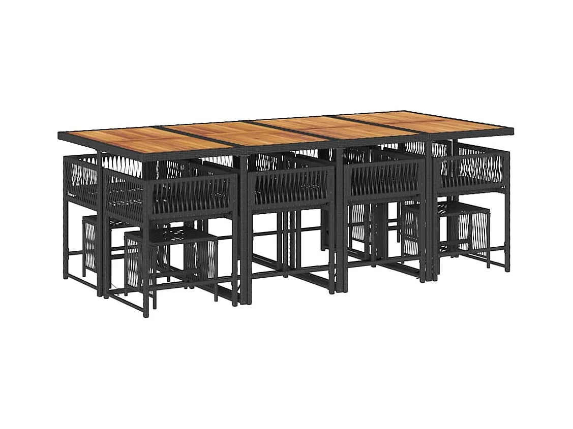 Ensemble à manger de jardin 13 pièces coussins noir résine tressée