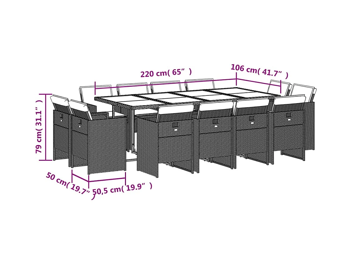 Ensemble à manger de jardin 13 pièces coussins noir résine tressée