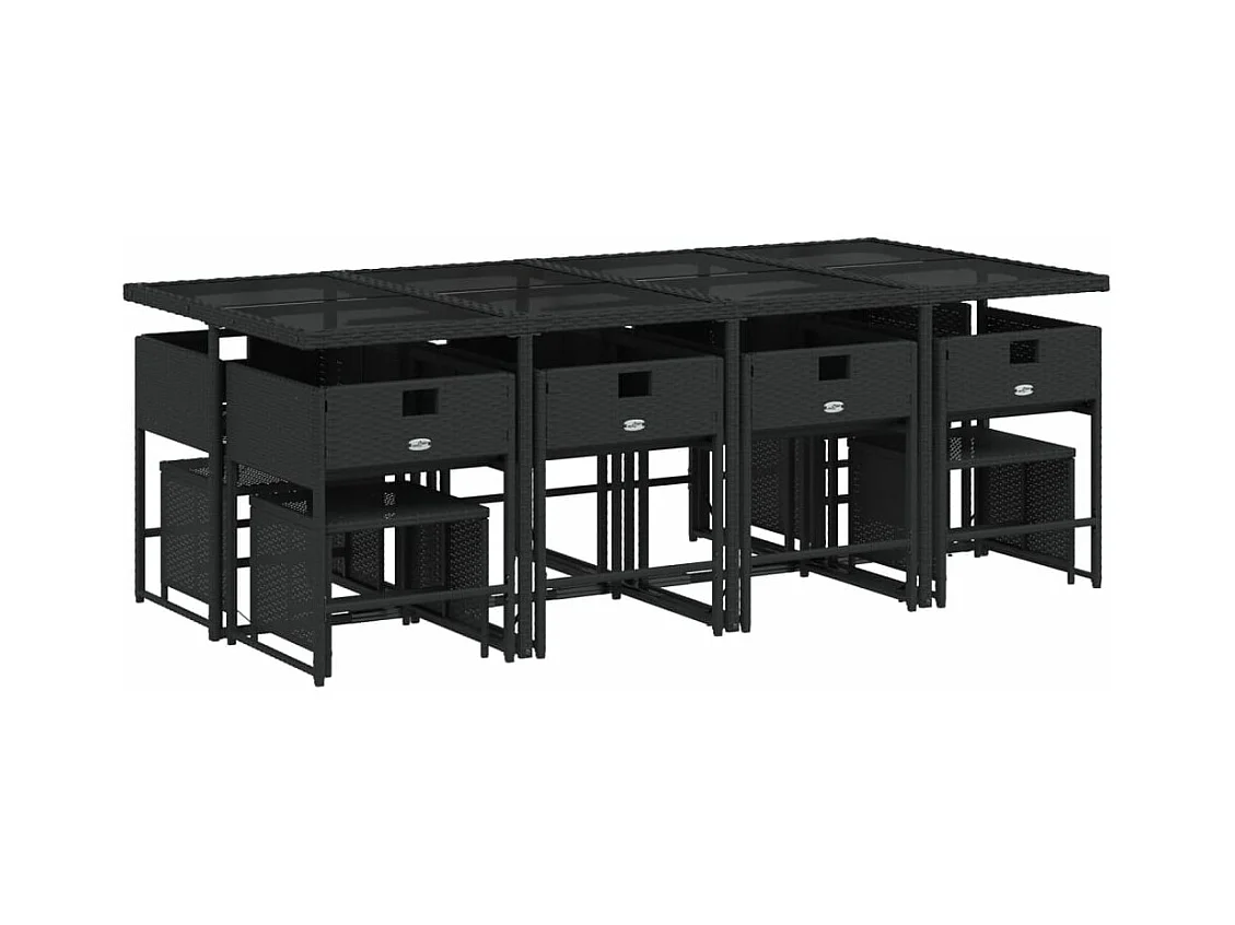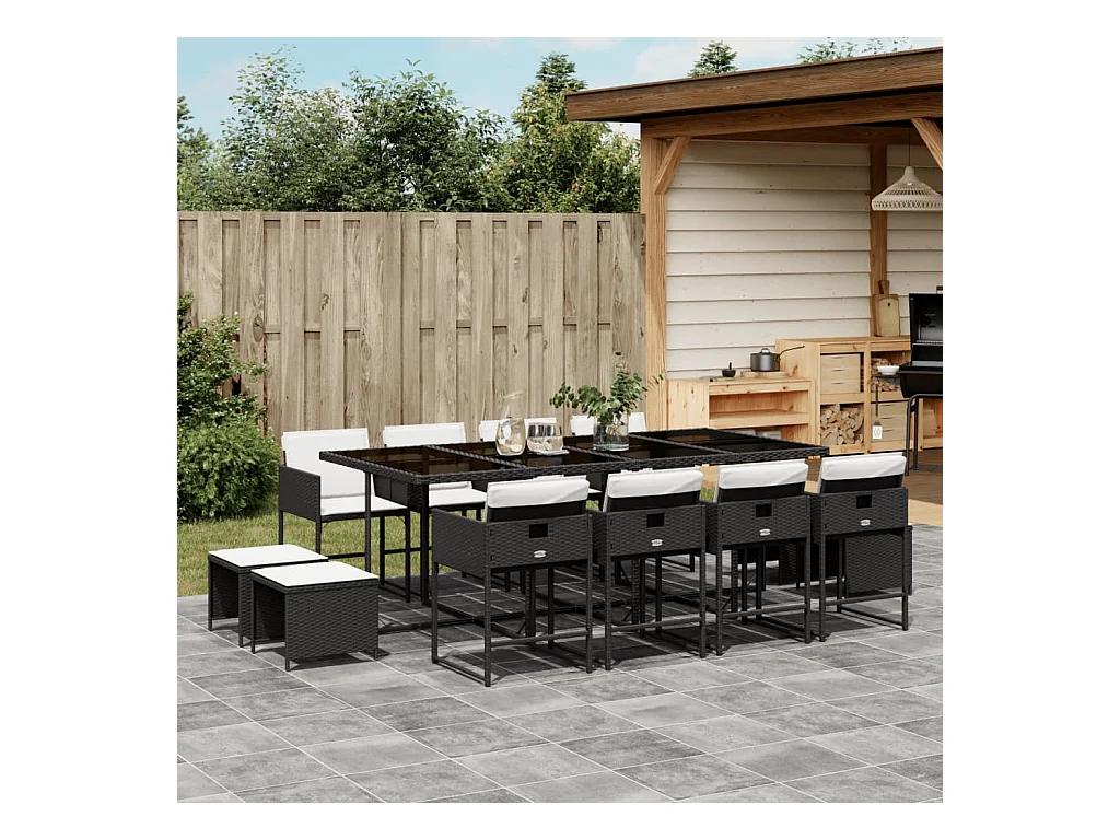 Ensemble à manger de jardin 13 pièces coussins noir résine tressée