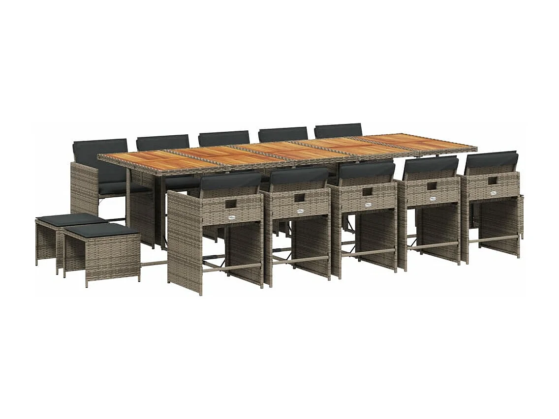 Ensemble à manger de jardin 15 pcs coussins gris résine tressée