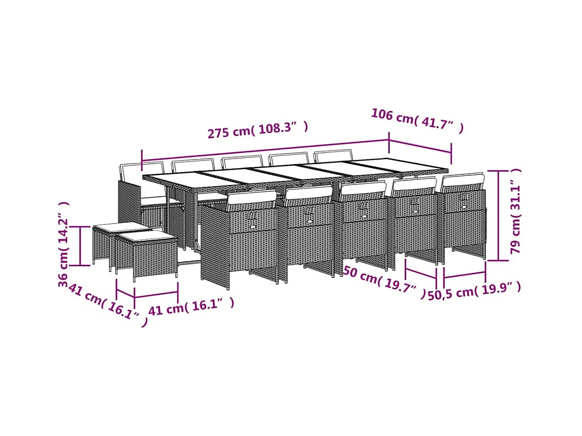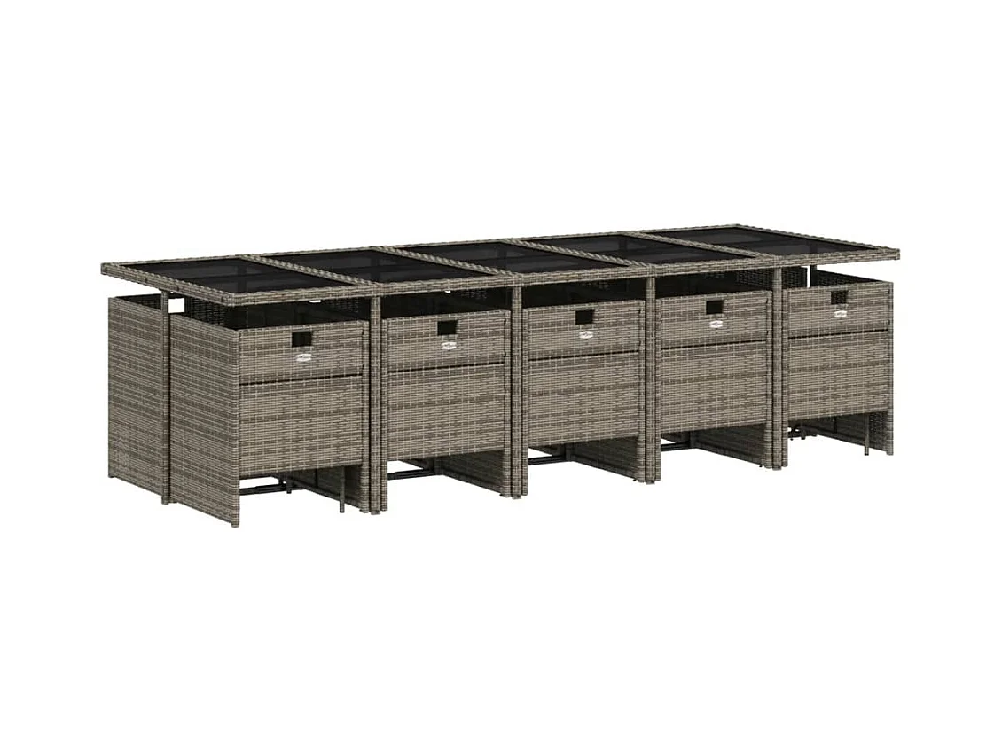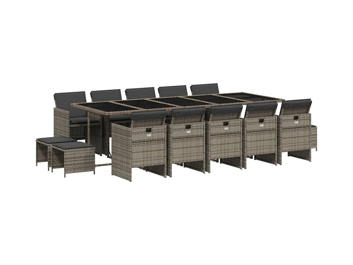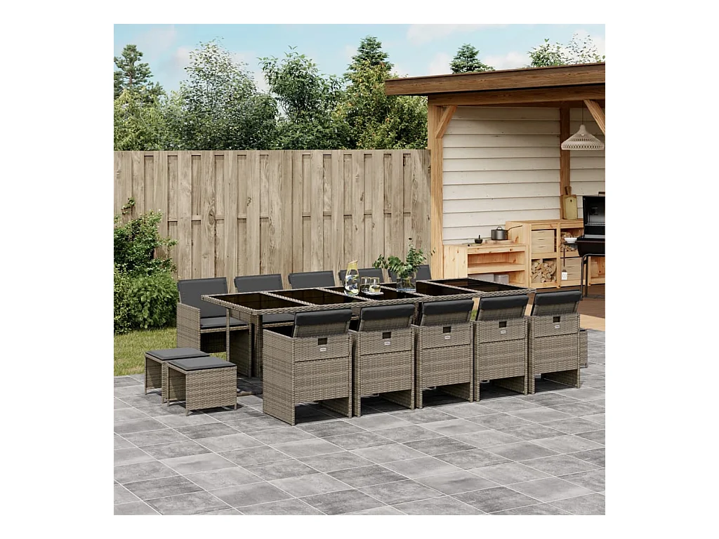 Ensemble à manger de jardin 15 pièces coussins gris résine tressée