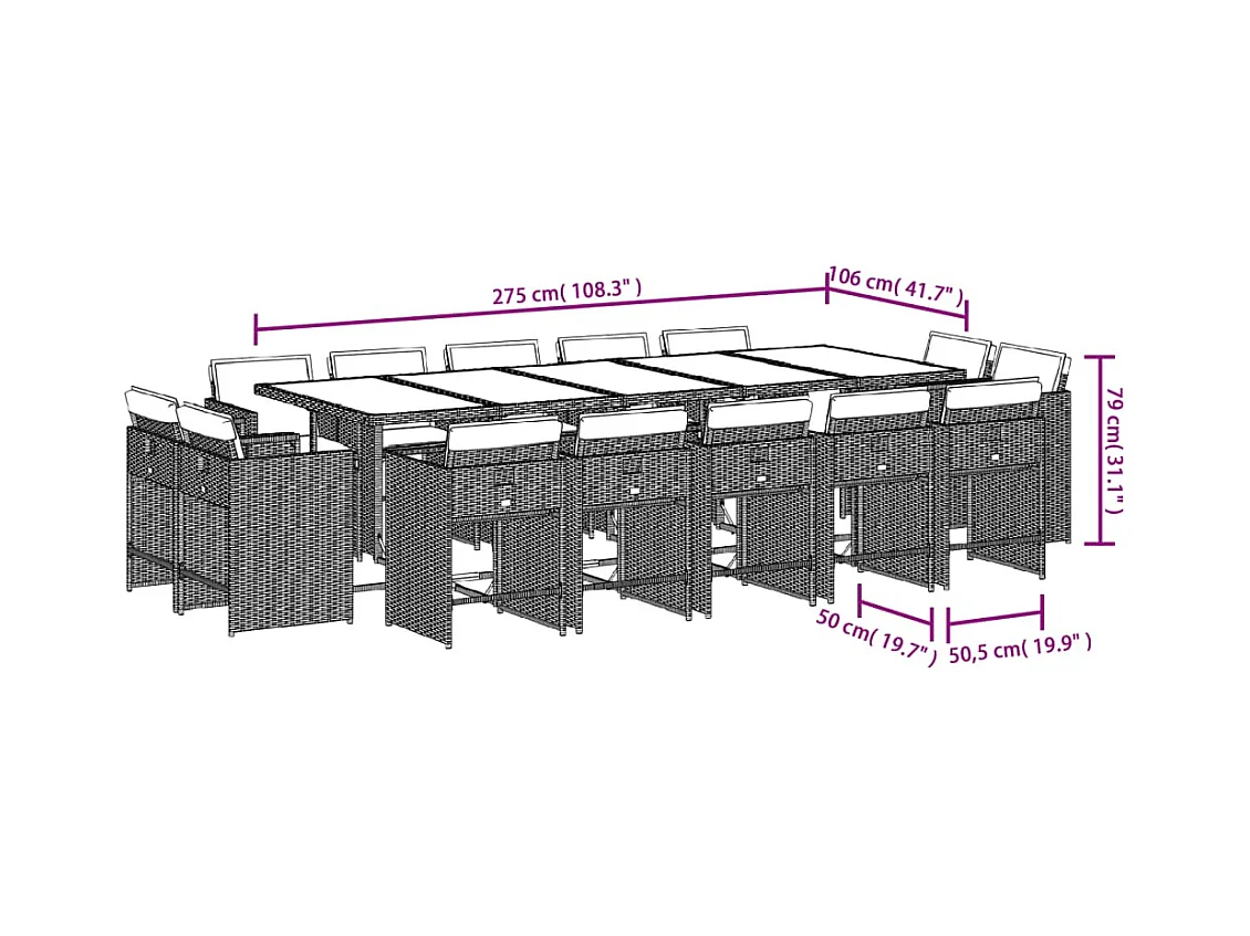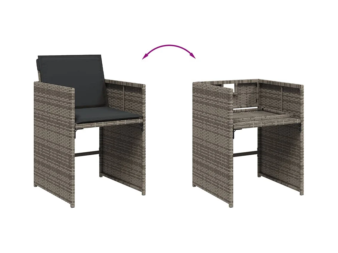 Ensemble à manger de jardin 15 pièces coussins gris résine tressée